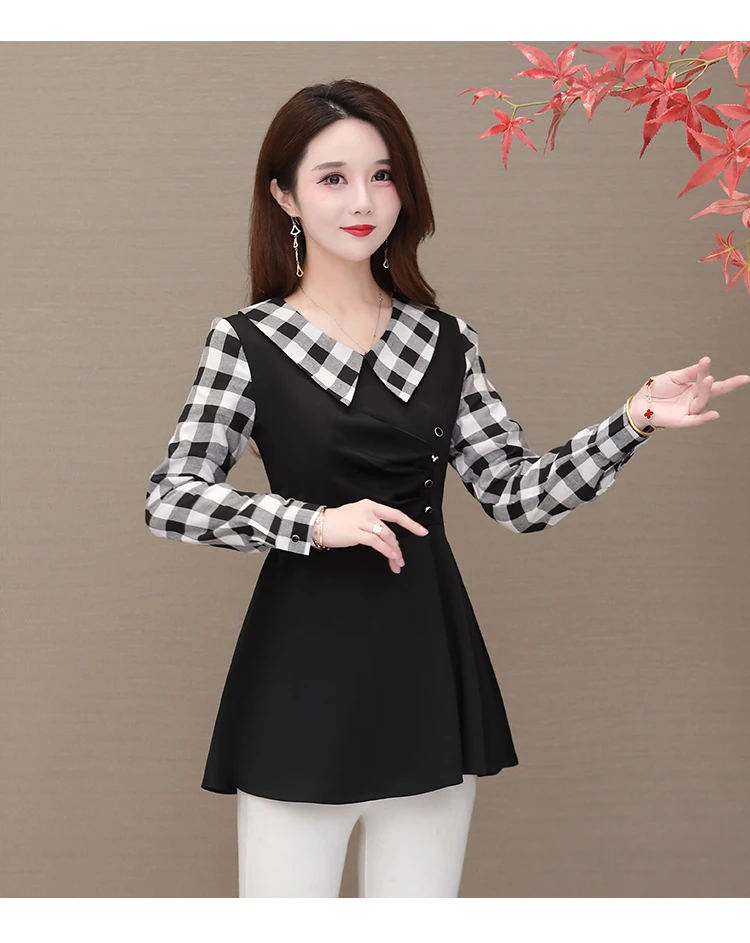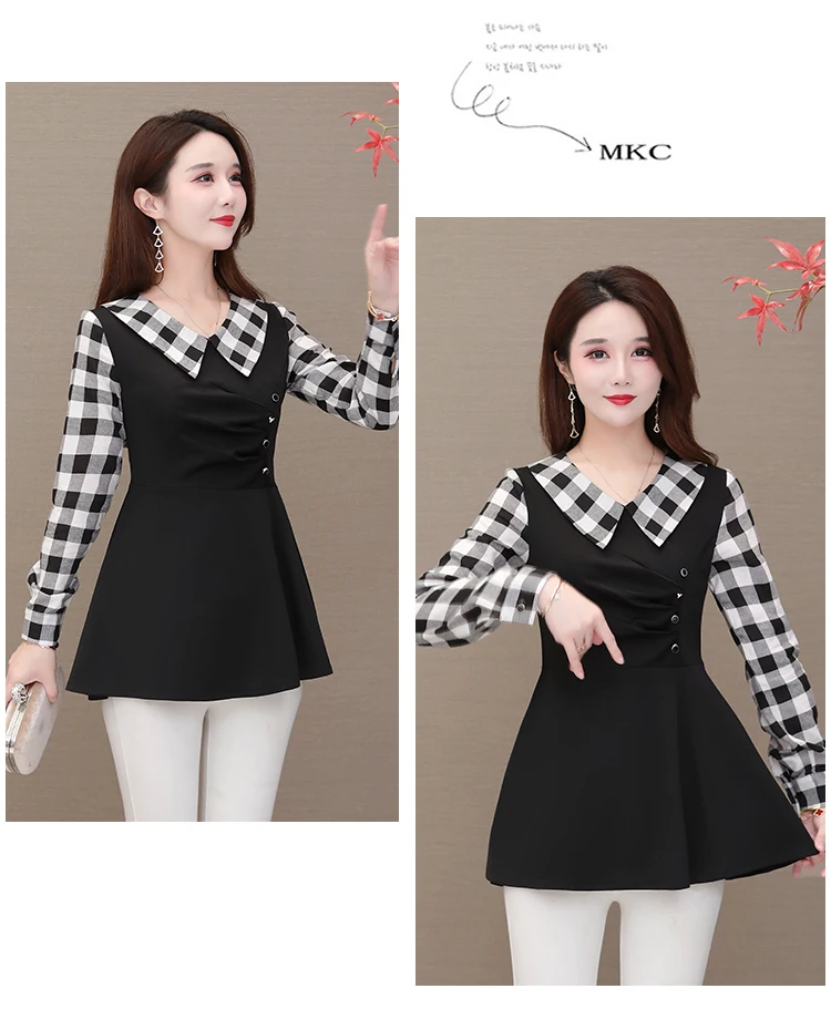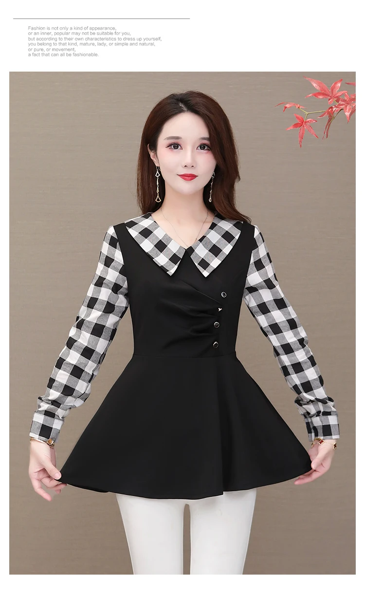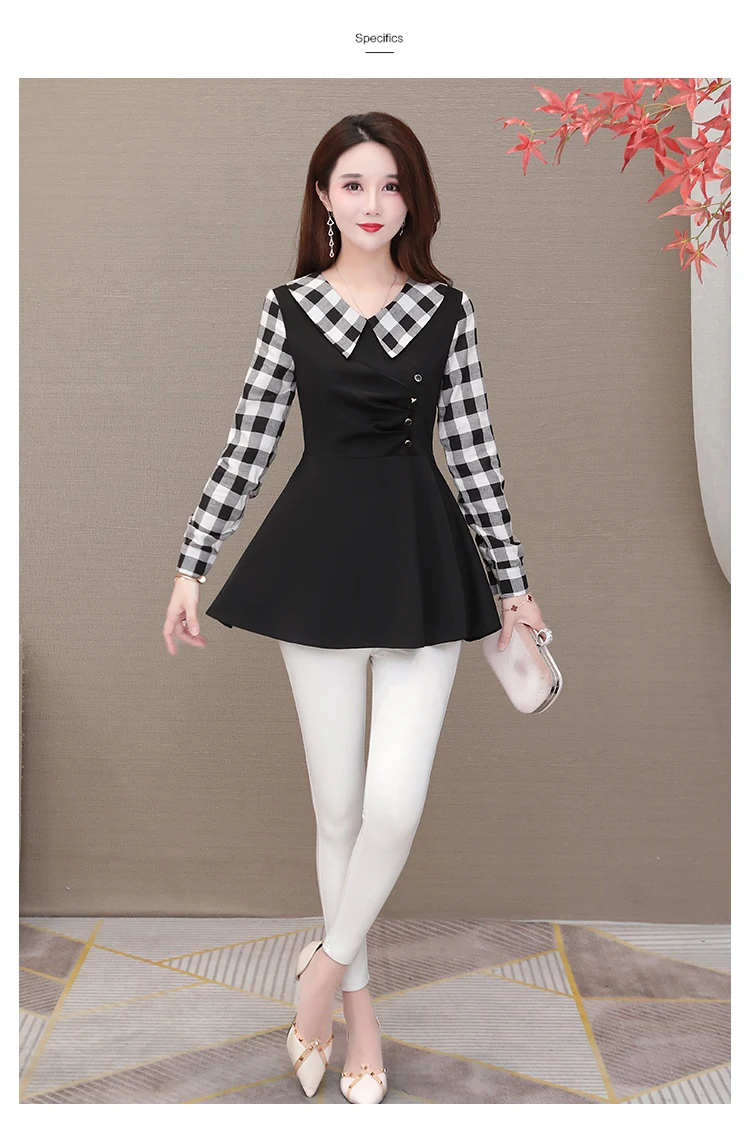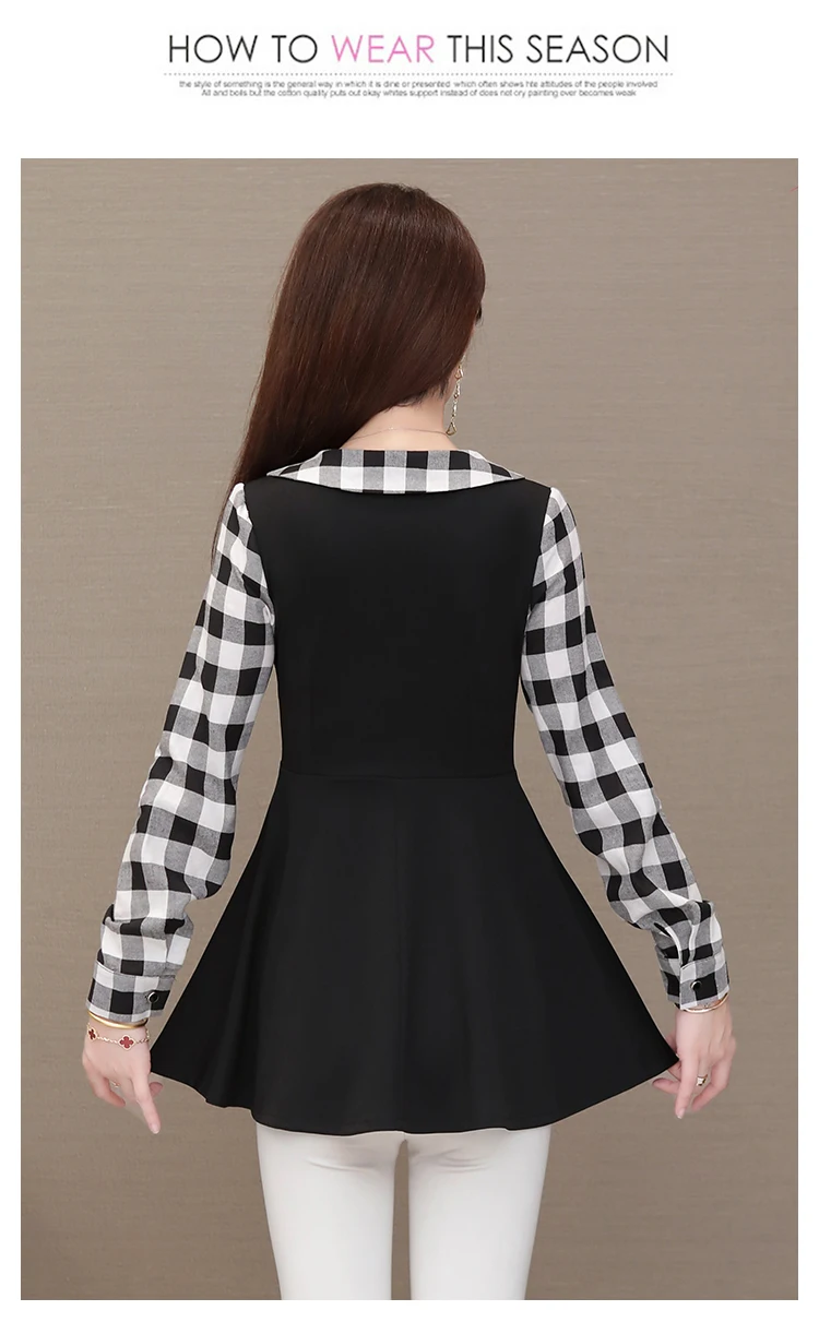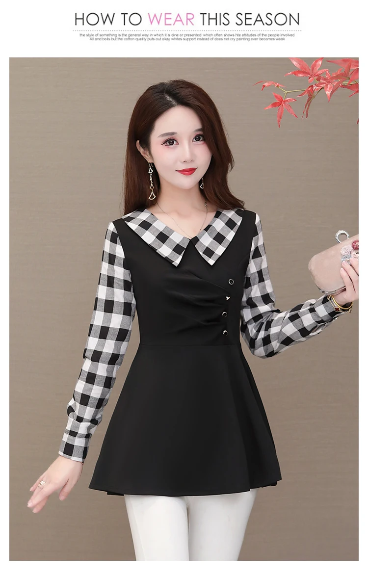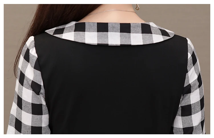 5XL плюс размер женские блузки 2020 модная Осенняя Лоскутная рубашка с круглым вырезом и коротким рукавом женские повседневные топы blusas femininas elegante