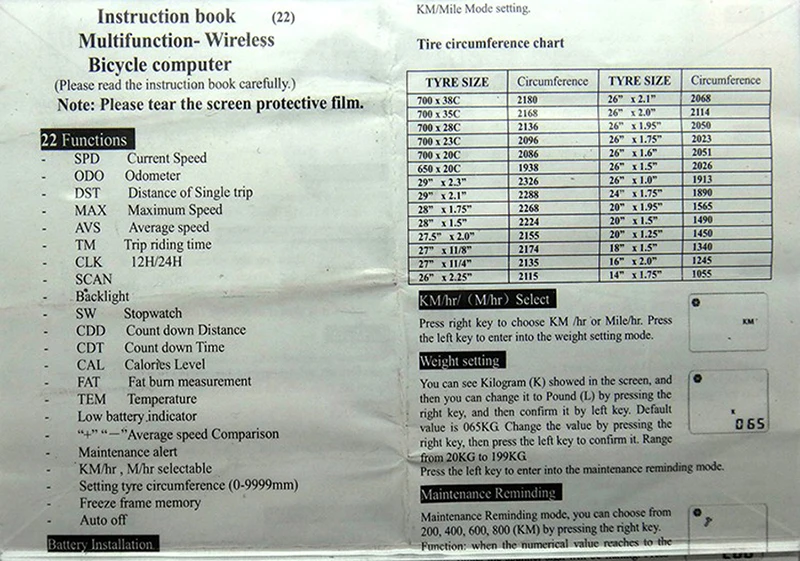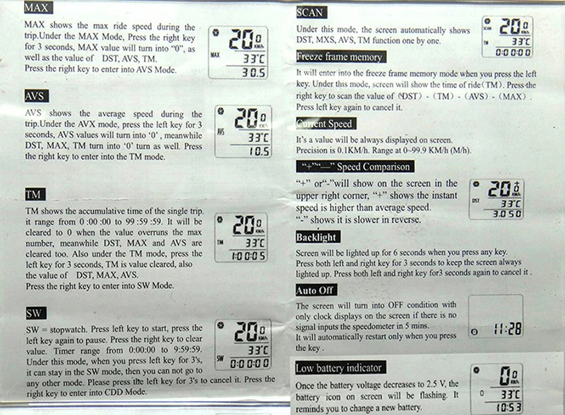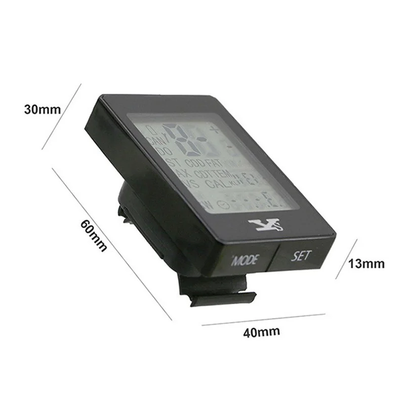 Множественная функция 20 полезных функций удовлетворяют ваши различные потребности в езде. Интеллектуальный дизайн и простая работа для людей, чтобы отслеживать свой Открытый Велоспорт в реальном времени и расстояния. Простая операция для людей, чтобы отслеживать расстояние в реальном времени на открытом воздухе, максимальную скорость, среднюю скорость, время вождения, потребление калорий, температуру, секундомер, техническое обслуживание и т. д. Более подробную информацию см. В руководстве по продукции. Технические характеристики: Название: беспроводной компьютер для велосипеда Материал: Пластик Цвет: черный Аккумулятор: 2 * CR2032 Экран Размер: 30x40mm Размер продукта: 40x60x10mm Вес нетто: 45 г Особенности: 1. SPD: скорость тока 2. ODO: одометр 3. DST: расстояние одиночной поездки 4. MXS: максимальная скорость 5. AVS: средняя скорость 6. ТМ: время езды 7. CLK: (12H/24H) /часы 8. Сканирования 9. SW: таймер (секундные часы) 10. CDD: отсчет расстояния 11. CDT: время отсчета 12. CAL: уровень калорий 13. Жир: измерение сжигания жира 14. TEM: Температура 15. Indiation для малой мощности 16. Подсветка 17. Компаратор "+"-" 18. Функция напоминания о техническом обслуживании 19. Адаптер для км/ч или м/ч 20. Задана окружность колеса установка 21. Экономия энергии