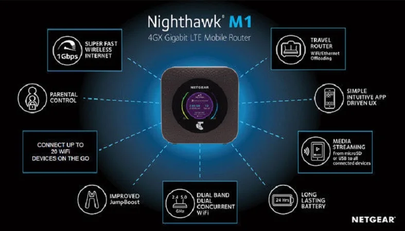 Netgear Nighthawk M1 (номер модели: MR1100)Является первым в мире коммерческим гигабитным мобильным маршрутизатором класса LTE, работающим от модема Qualcomm Snapdragon X16 LTE, а также с решениями Qualcomm Wi-Fi, netgear Nighthawk M1 может поддерживать LTE Advanced Category 16 с 4x4 MIMO и 4-полосной технологией агрегации, и она может достичь скорости загрузки до 1 Гбит/с. Мобильный роутер Nighthawk M1 является идеальным компаньоном для путешествий, обеспечивающим удобство мобильной точки доступа с полной функциональностью маршрутизатора для путешествий, поддержка до 20 Wi-Fi устройств на одном подключении, так что вы можете безопасно поделиться своим мобильным Интернетом с семьей или сотрудником во время поездки, дома, Во время путешествий для работы или удовольствия.