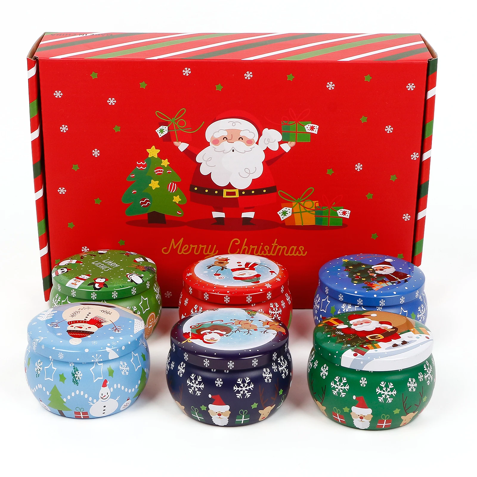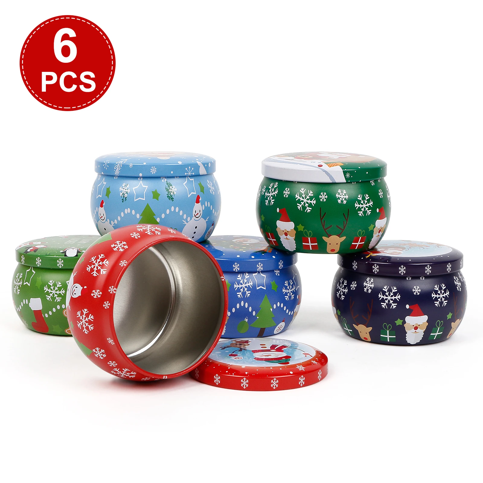 Рождественская круглая металлическая банка для свечей, банка для печенья, монет, конфет, Подарочная коробка для хранения, горшки, новогодний воск, контейнер для свечей 4,4 oz