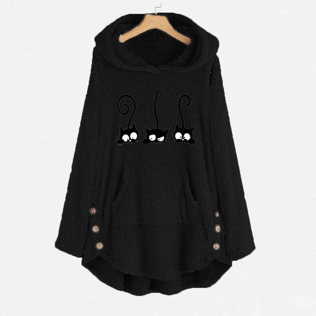 Женская флисовая кофта с вышивкой кота размера плюс, теплая толстовка на пуговицах