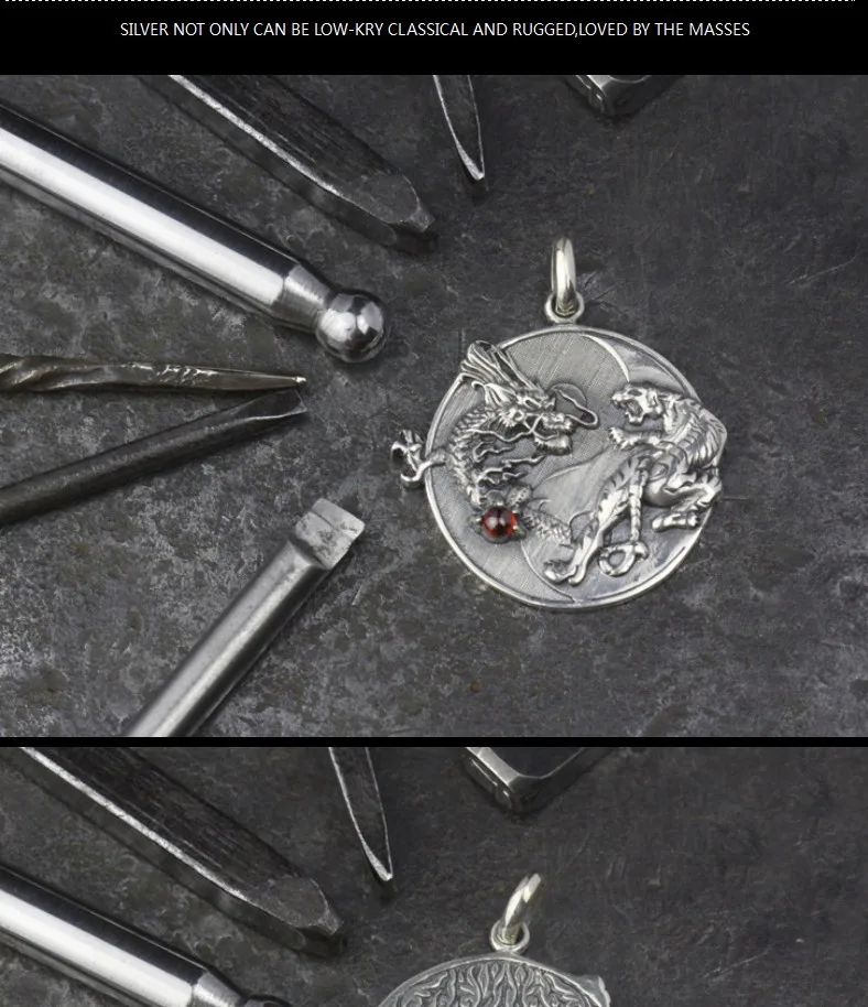 Тайский Серебряный Дракон Тигр кулон