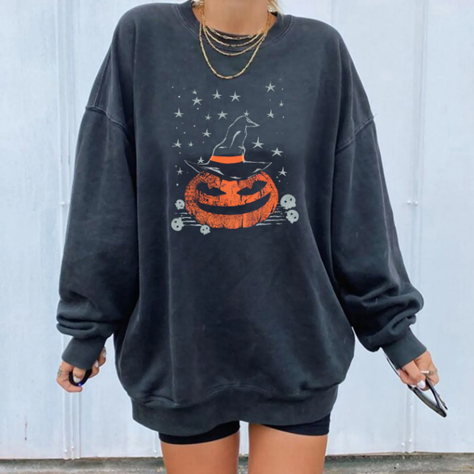 Женская Повседневная Толстовка с длинным рукавом и принтом на Хэллоуин