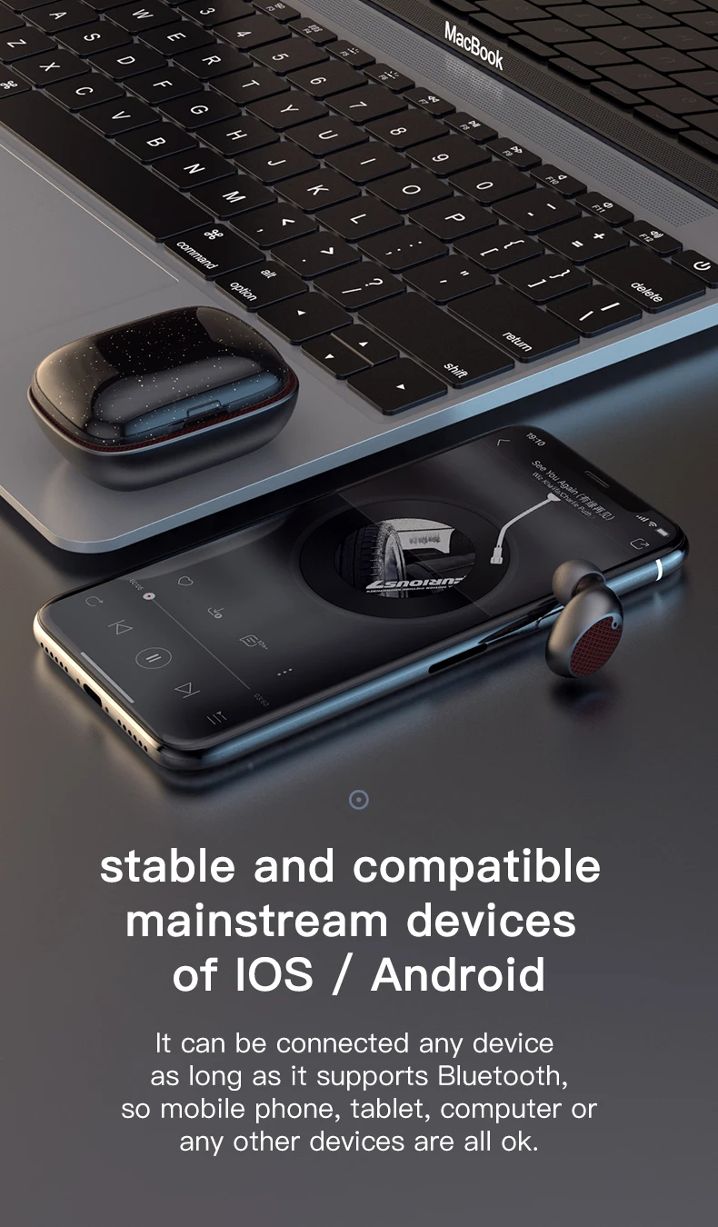 Название продукта: Беспроводная bluetooth-гарнитура Версия Bluetooth: V5.0 + EDR (Bluecom 8832A) Протокол поддержки: HFP / HSP / A2DP / AVRCP Емкость аккумулятора наушников: 3,7 в/50 мА · ч Емкость зарядного аккумулятора: 3,7 в/600 мА · ч Время зарядки: около 2 часов Время работы: около 4 часов Время работы в режиме ожидания: около 50 часов Расстояние Bluetooth: около 15 ~ 20 метров (в условиях безбарьерной среды) Частота: 24 ГГц Напряжение: 3,7 V Материал: АБС-пластик Цвет: коричневый/красный Комплектация: 2 * беспроводные наушники 1 * кабель для зарядки 1 * зарядный чехол 2 * вкладышей 1 * Руководство по использованию