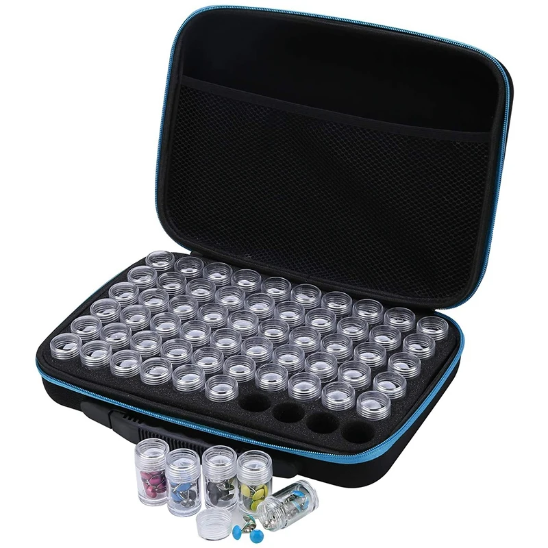 60 слотов чехол для хранения алмазной живописи, для ювелирных украшений, бусины, кольца, очаровательные блестящие стразы, поставляются с 60 пластиковыми баночками