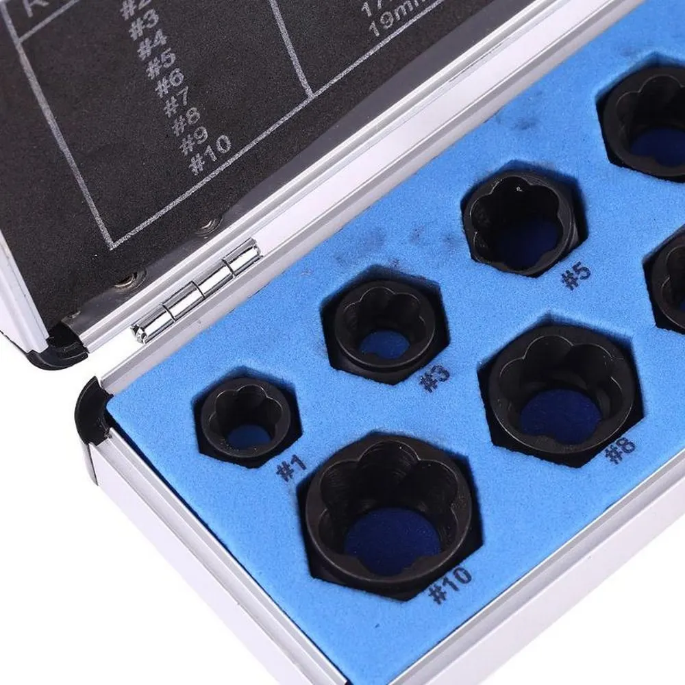 10Pcs Bolt Extractor 9-19mm Nut Remover Kit Screw Remover Socket Head Tap Broken Bolt Screw Nut Removal Tools Accessories