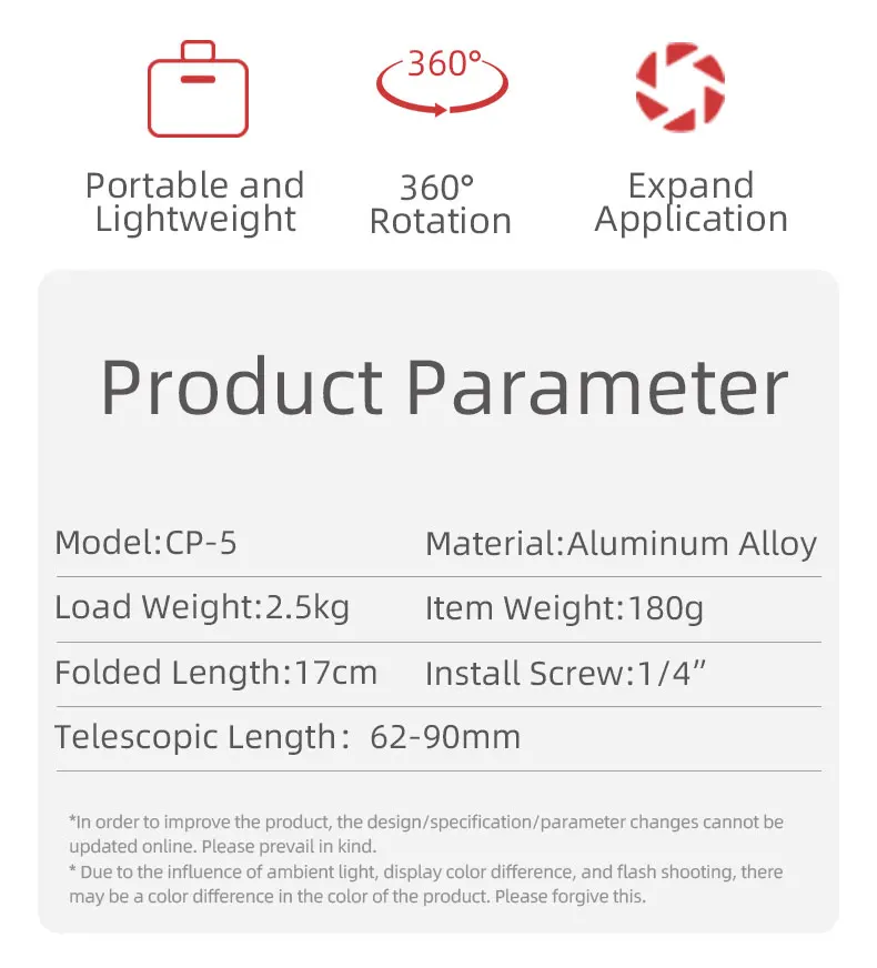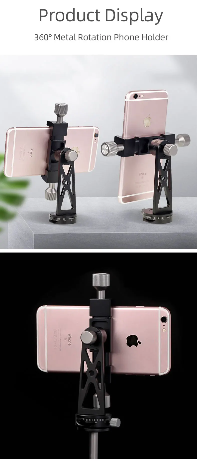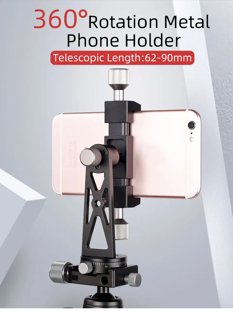 Произвольное вращение на 360 °: дизайн с шариковой головкой, позволяет легко использовать ваш телефон в ландшафтном или портретном режиме, не нужно снимать мобильный телефон или зажим, позволяет быстро переключаться в горизонтальной и вертикальной формах и других различных углах съемки; Основание с горизонтальным вращением на 360 °, вы можете вращать держатель телефона на 360 градусов в горизонтальном направлении, Значительно повышает эффективность и удовольствие от съемки.