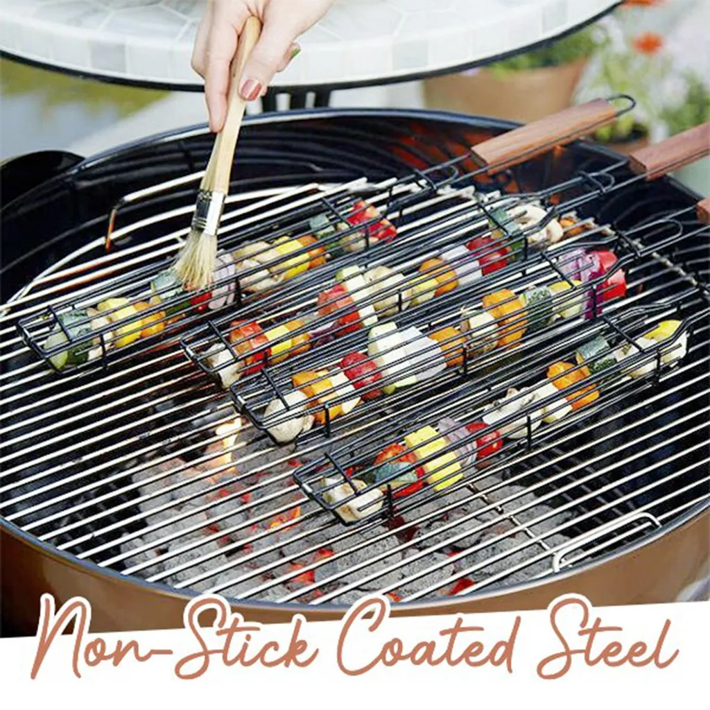 Изготовлен из тяжелой стали с антипригарным покрытием. В отличие от обычных барбекю Шампуры, эти цельнометаллические корзины крепкие и никогда не горят.