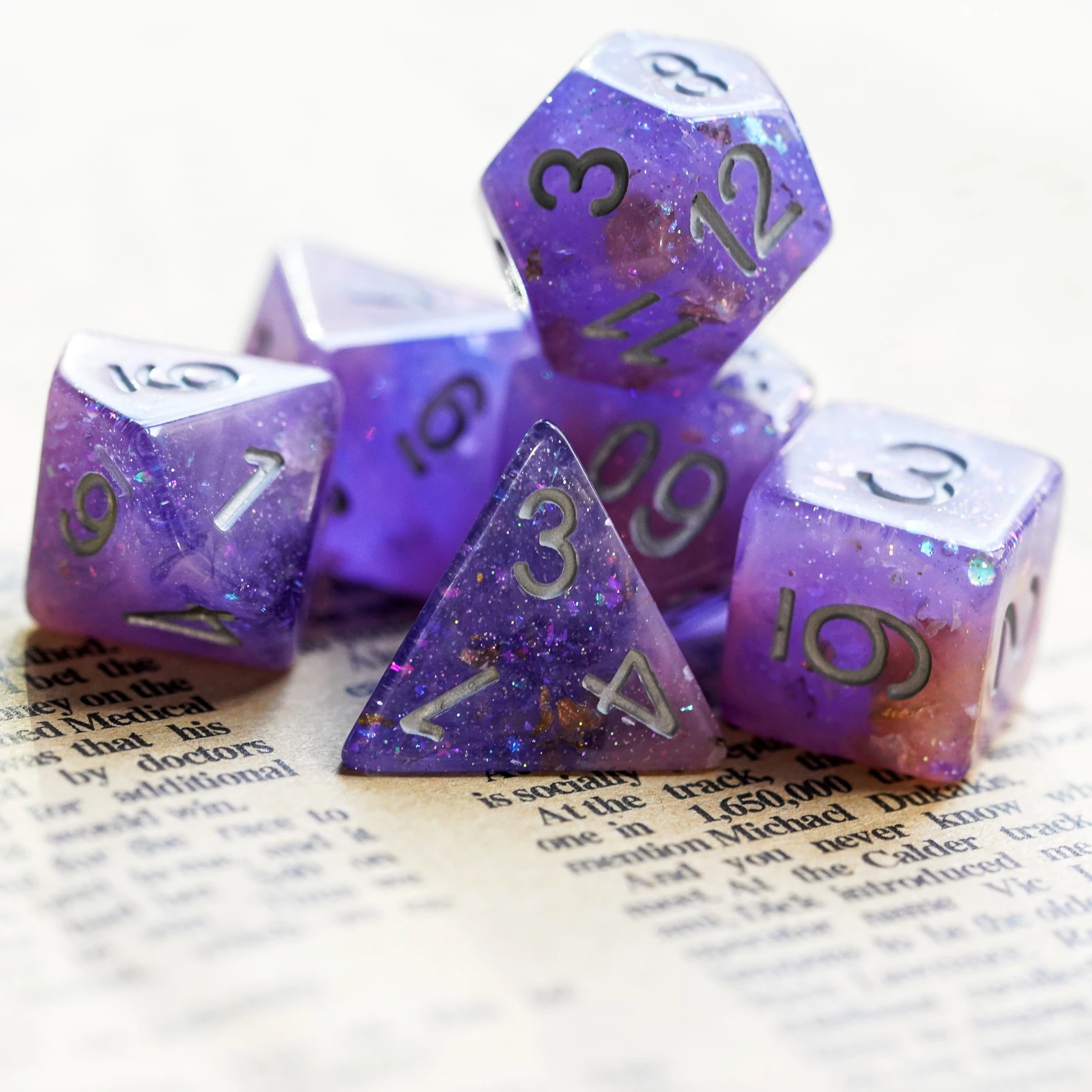 Это полный набор игральных костей, включая 1 * D4, 1 * D6, 1 * D8, 1 * D10(0-9), 1 * D12, 1 * D20 и 1 * D %(00-90).