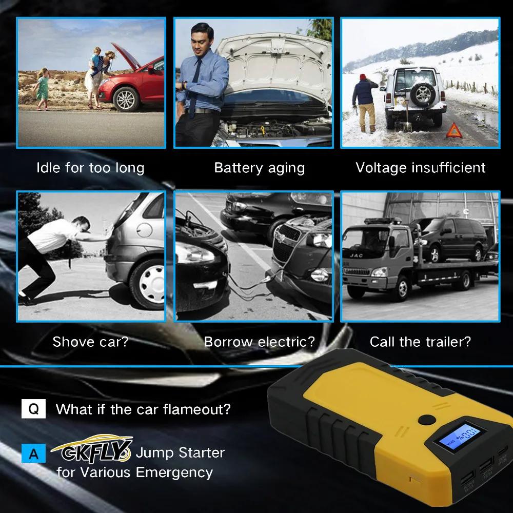 Быстрый запуск 12 В бензинового автомобиля (до 3,5 л) и дизельного автомобиля (до 2,5 л) как раз за секунды, когда аккумулятор автомобиля разрядился. Когда вы едете в неизвестном месте, и ваш автомобильный аккумулятор не работает, вы можете использовать этот автомобильный стартер, чтобы начать свой автомобиль.