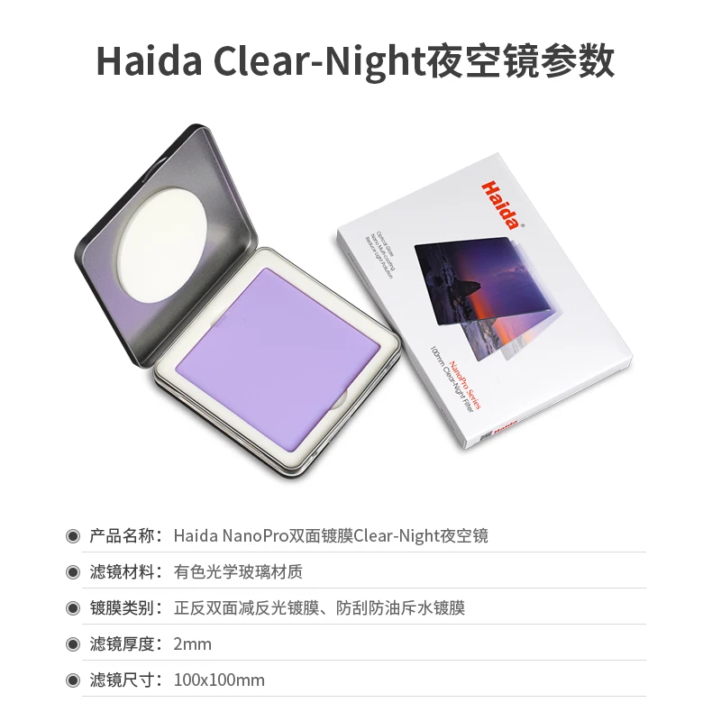 Посылка: 1 прозрачный ночной фильтр (с оригинальной упаковкой, 100x100 мм в металлической коробке, 150x150 мм в мягком мешочке)