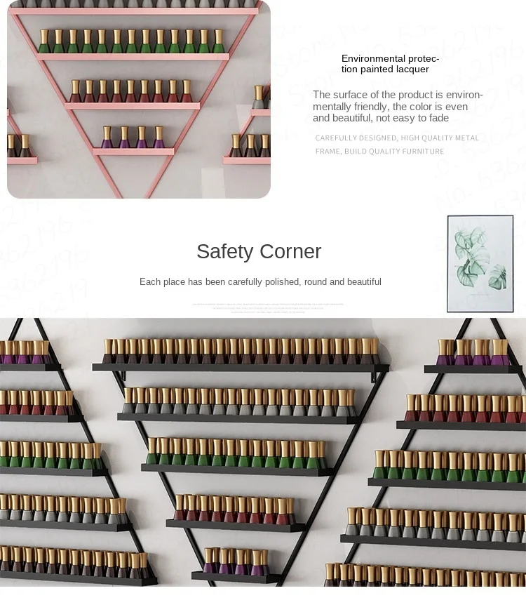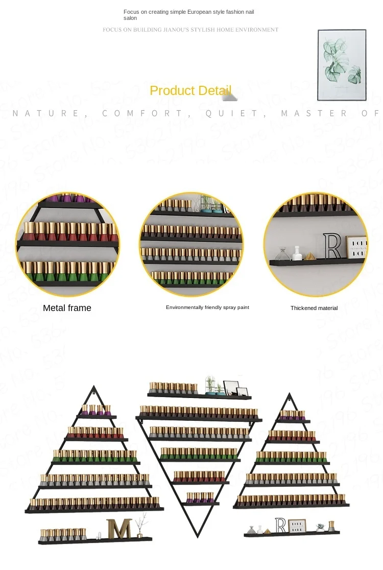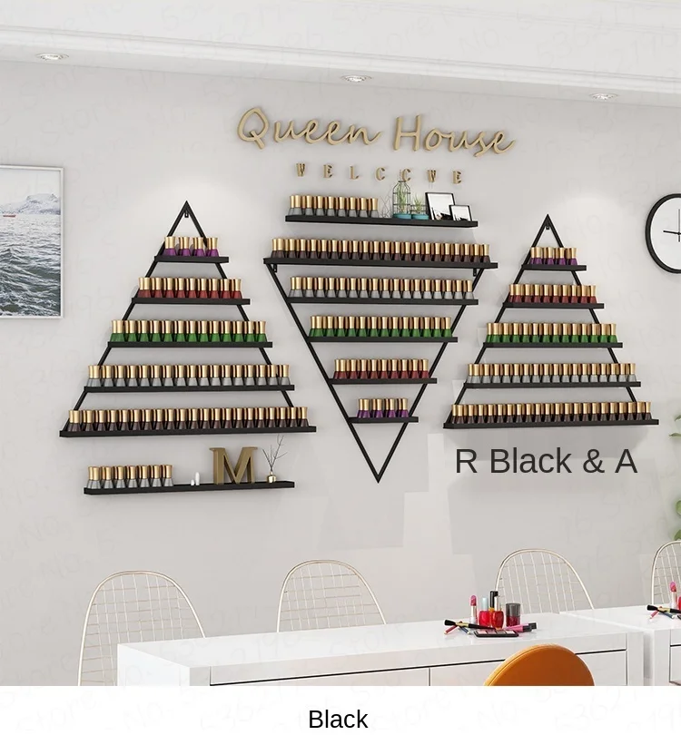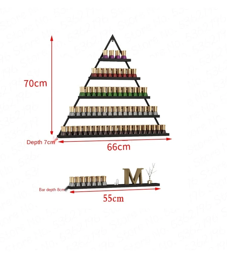 single triangle shelf size: 66L x 70H . can be hold about 90 bottles nail oil.