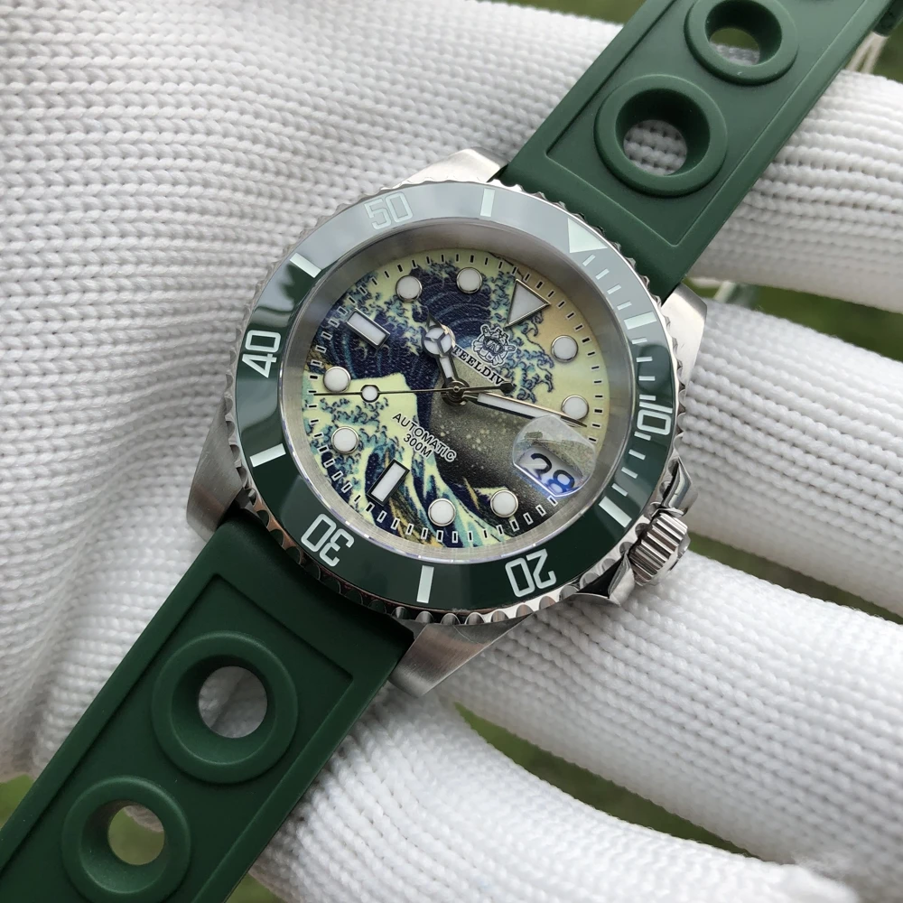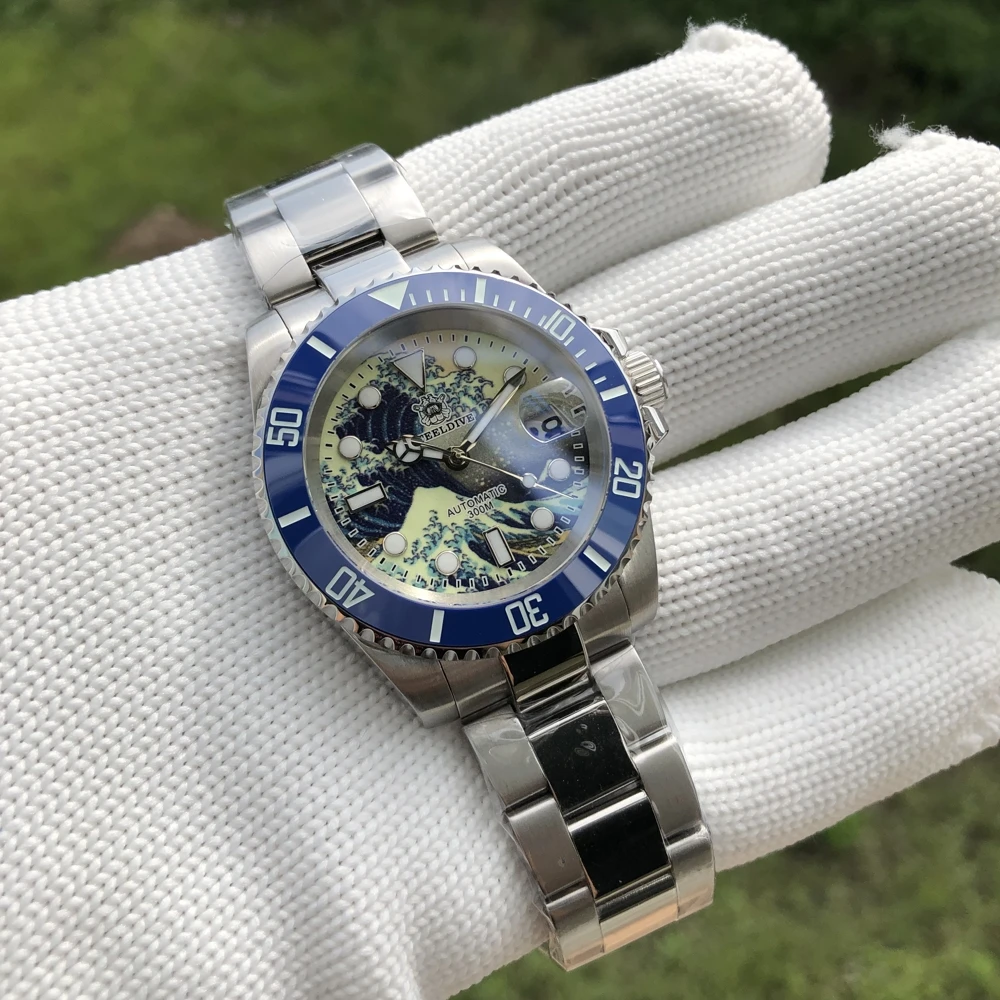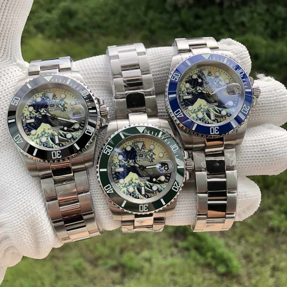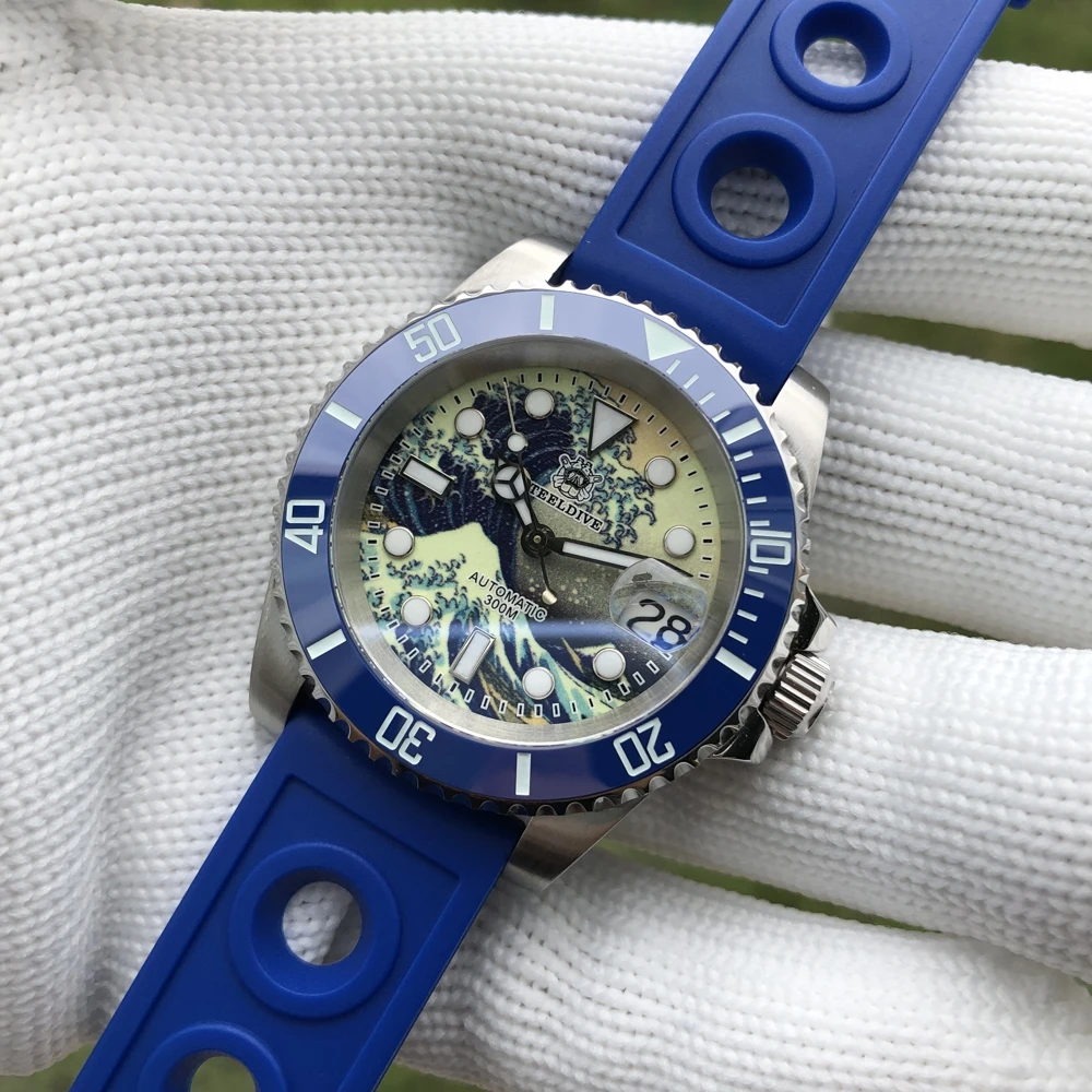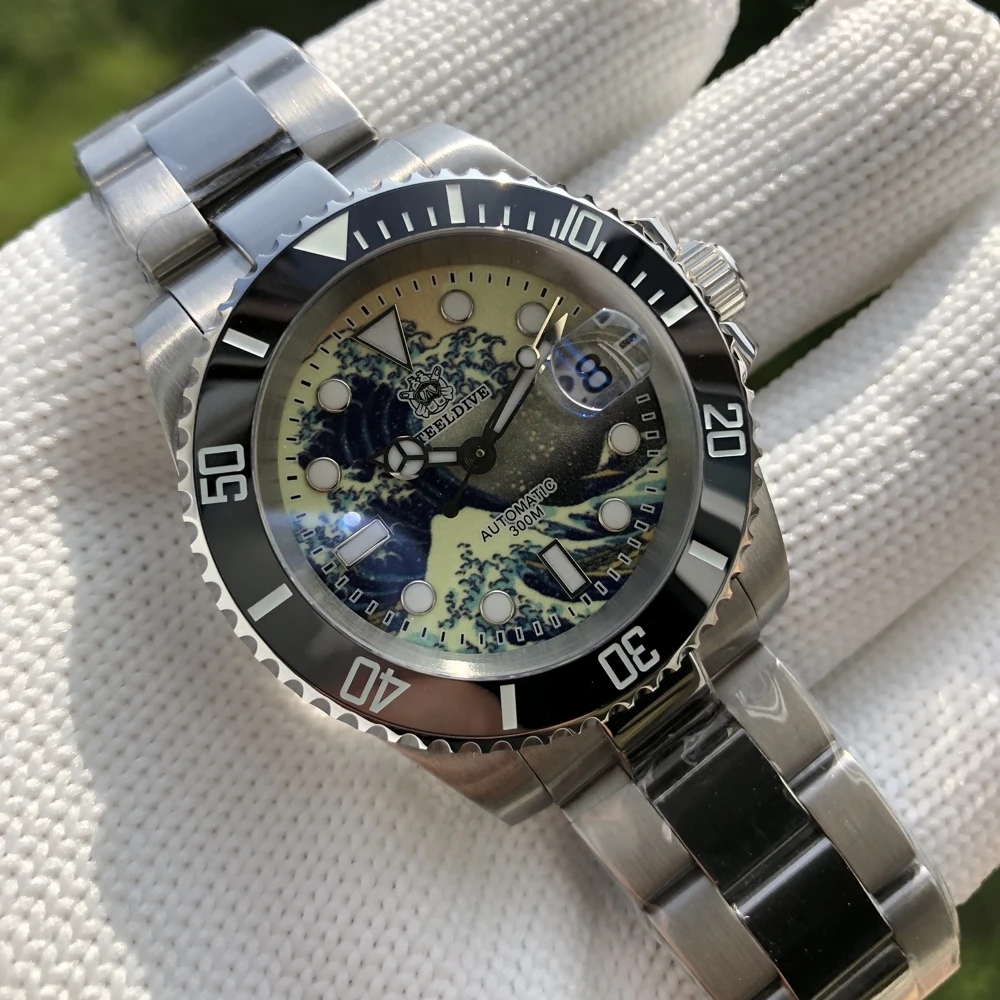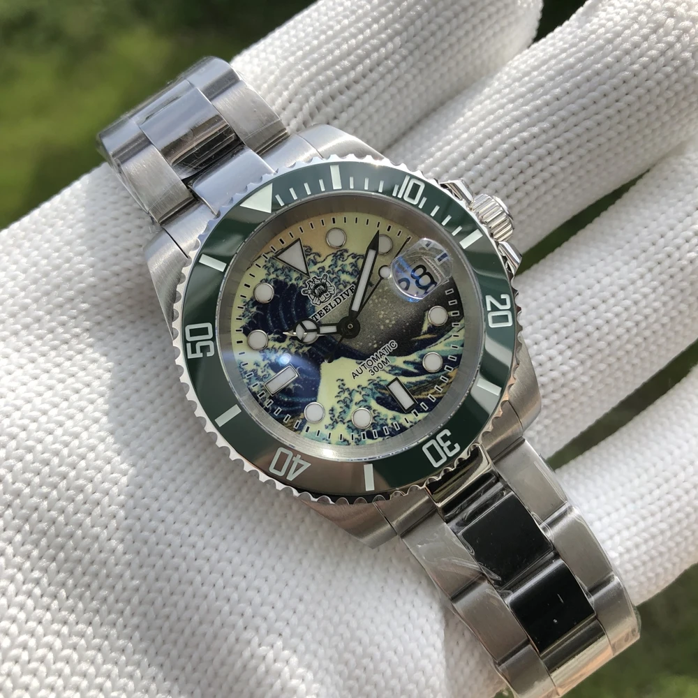 Стальные часы для дайвинга 1953J с керамическим циферблатом, механические часы с сапфировым кристаллом и циферблатом, автоматические мужские часы NH35 316L, стальные часы для дайвинга 300 м