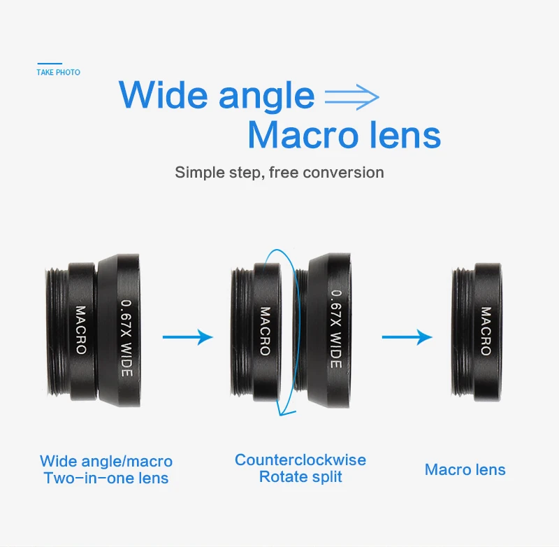 The macro lens and the wide-angle lens are combined, and the 0.67 wide-angle lens is unscrewed, and the macro function can be used.
