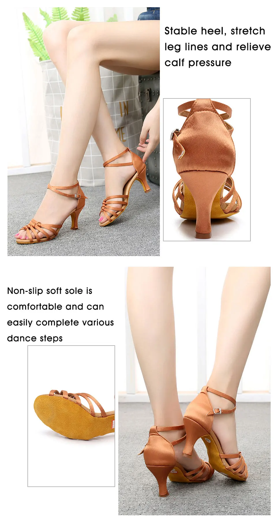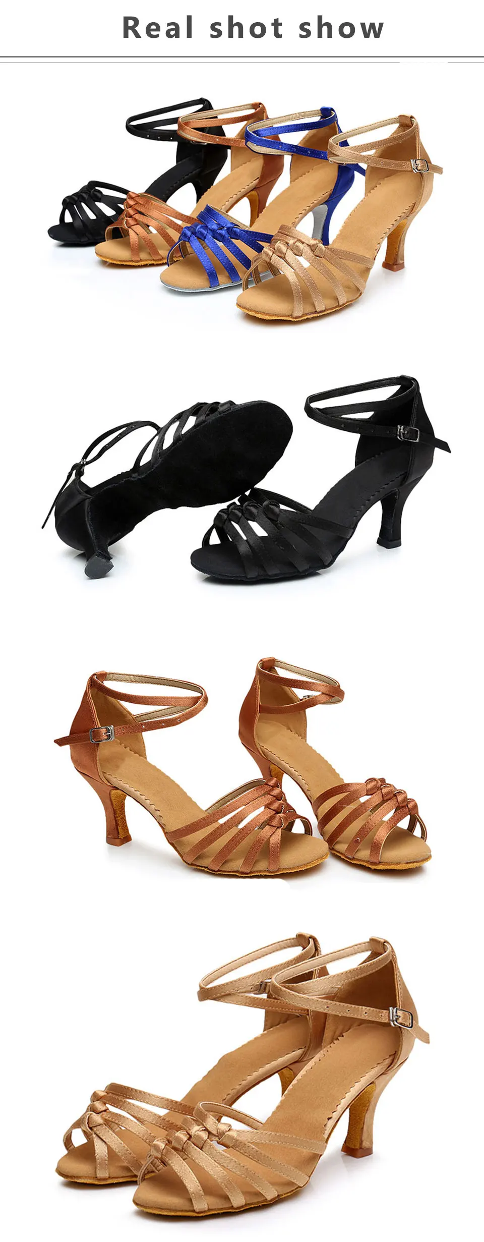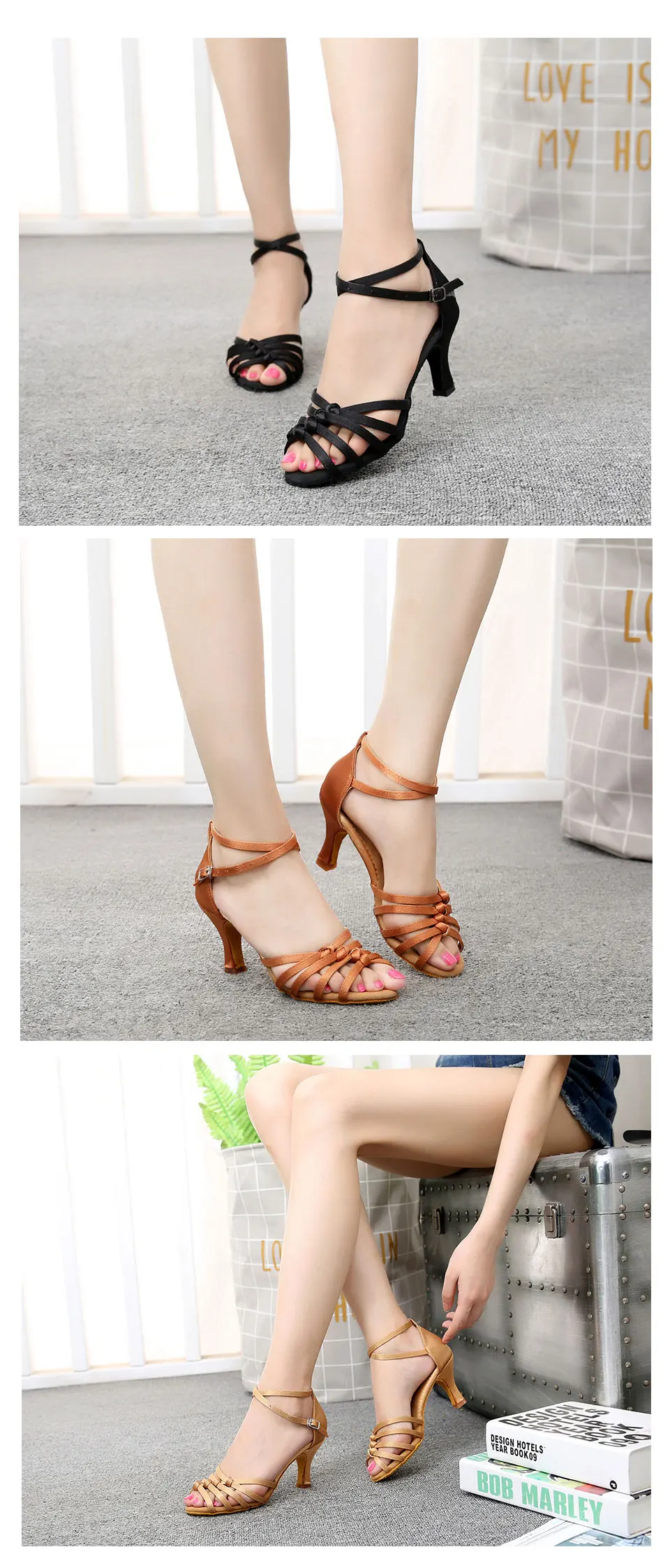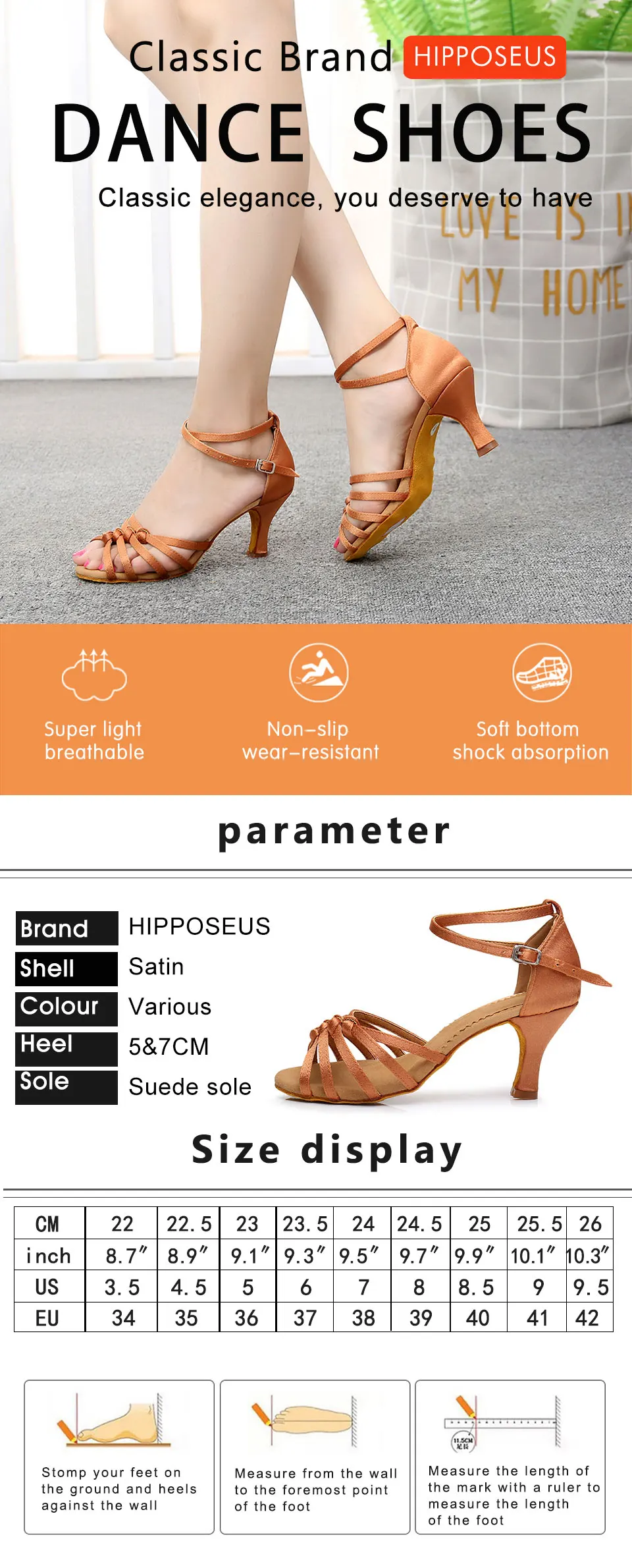 Hipposeus девочек Туфли для латинских танцев женская обувь без шнурков, для бальных танцев в стиле джаз современные Танго танцевальная обувь черный/коричневый Сальса сандалии 5/каблук высотой 7 см