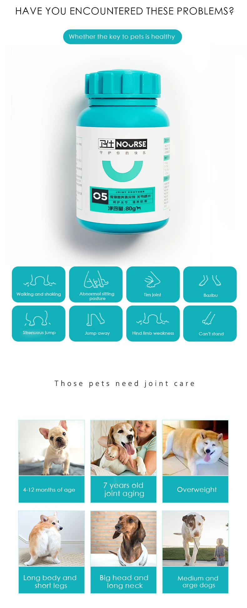 Гибкость: суставы кричат во время движения, жесткие ноги, трудность при ходьбе медленно, поднимая ноги, прыгая с дивана и т. д. Боль: собаки часто вылизывают ключи, болят и ныряют до изменения погоды и дождливых дней. Вышеуказанные проблемы-это суставы. Проблема