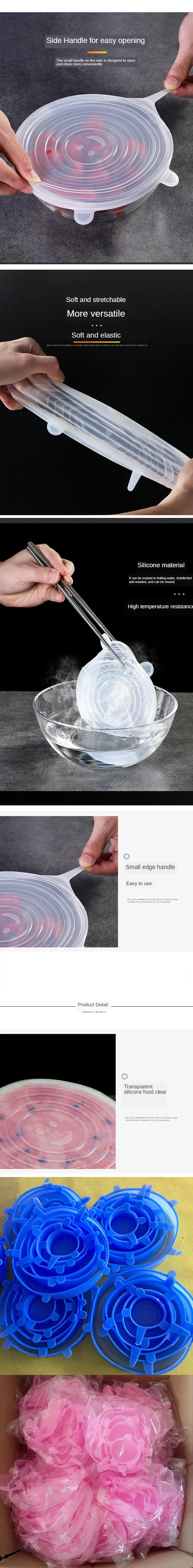 6 шт./компл. многоразовая силиконовая крышка для еды эластичные регулируемые многофункциональные крышки для фруктов и овощей