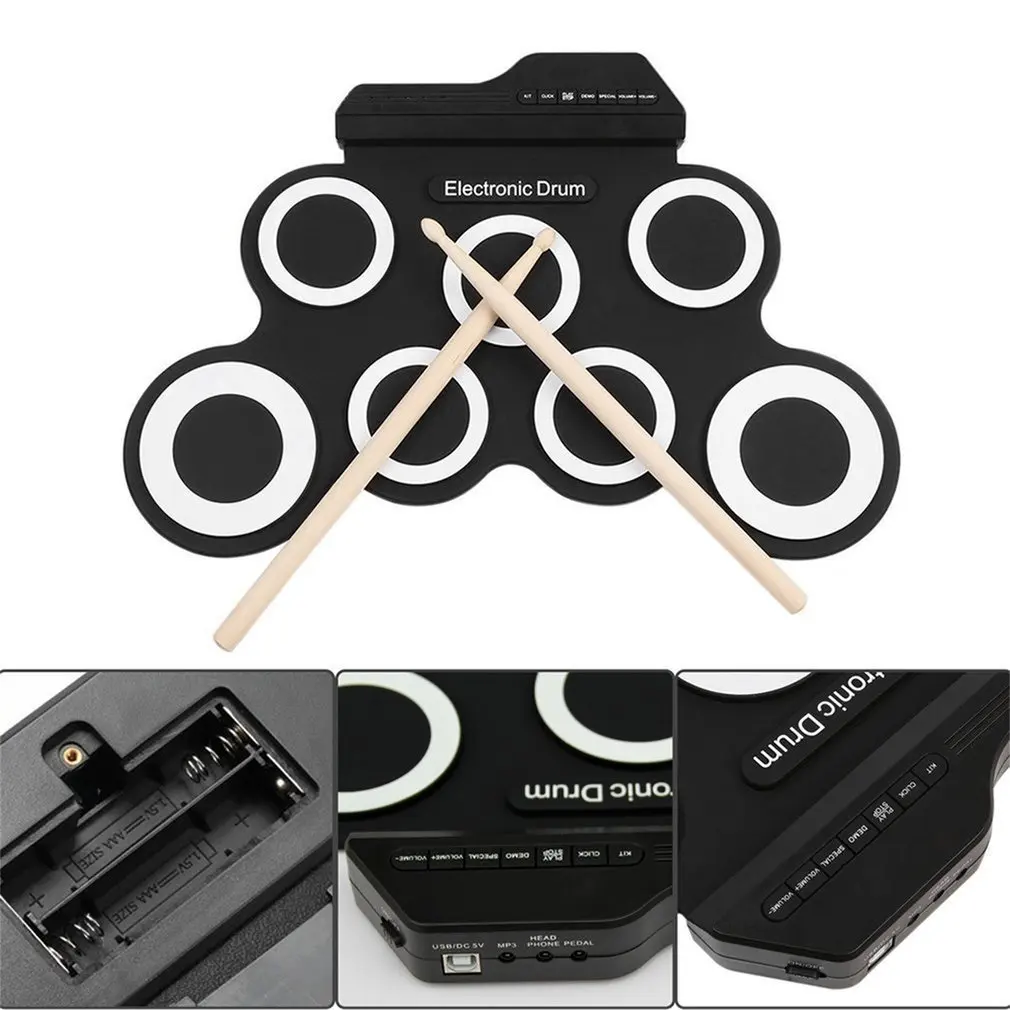 1. Реалистичный звук: Имитирует реальные ударные эффекты. С 7 силиконовыми барабанными подушечками, включая Tom/Snare/Hi-Hat/Crash/Ride, что делает отличные звуки и имитирует реальный эффект ударов.