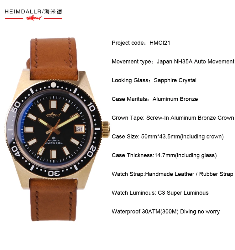 HEIMDALLR SKX 62MAS Diver часы Автоматические 300 м NH35A механические наручные часы сапфировое стекло Мужские бронзовые часы C3 светящиеся 2020