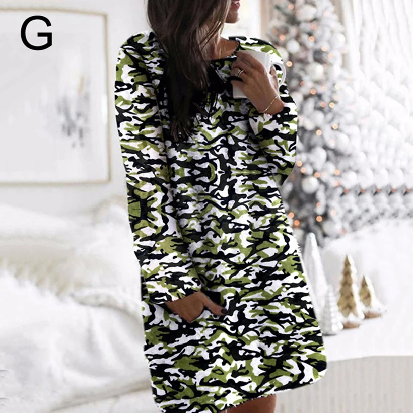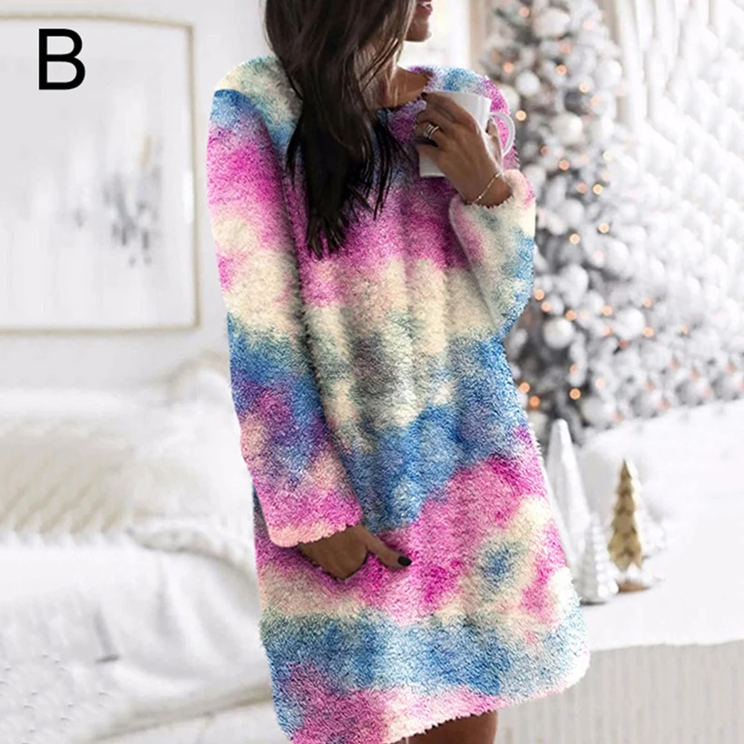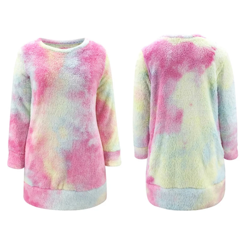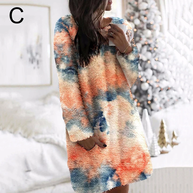 Камуфляжное платье с галстуком-краской для женщин 2020 осень-зима радужные леопардовые цвета с карманами теплые мягкие мини-платья с круглым вырезом