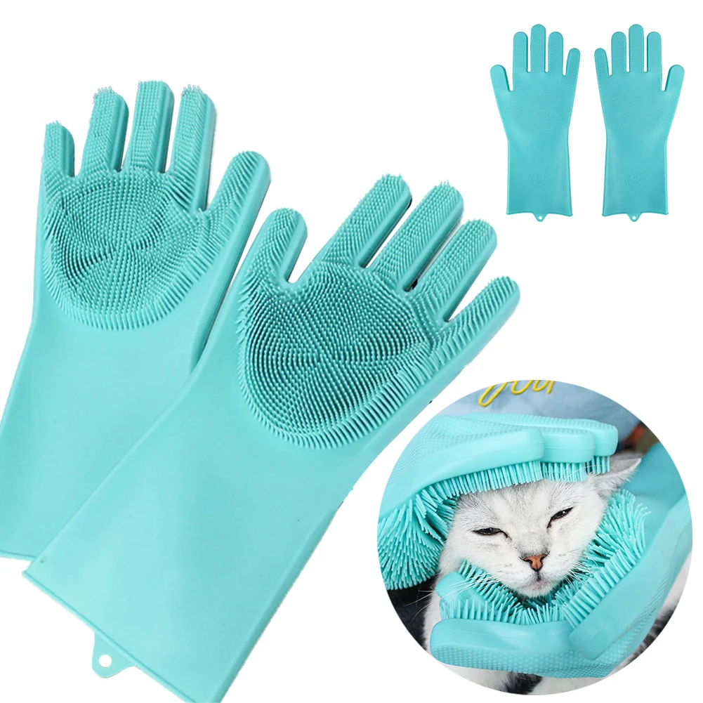 Silicone Brush Dishwashing Gloves Kitchen Clean Multipurpose Housework Pet Wash Cleaning Gloves for Pet Cleaning Dropship