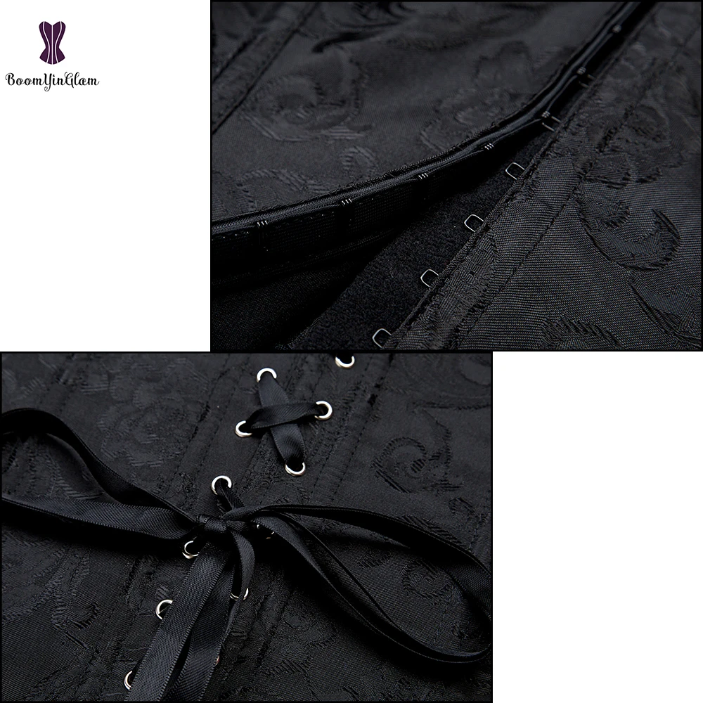 Жаккардовый корсет с цветочным рисунком, черный корсет на шнуровке, корсет на талии, бюстье, корсет, Корректирующее белье
