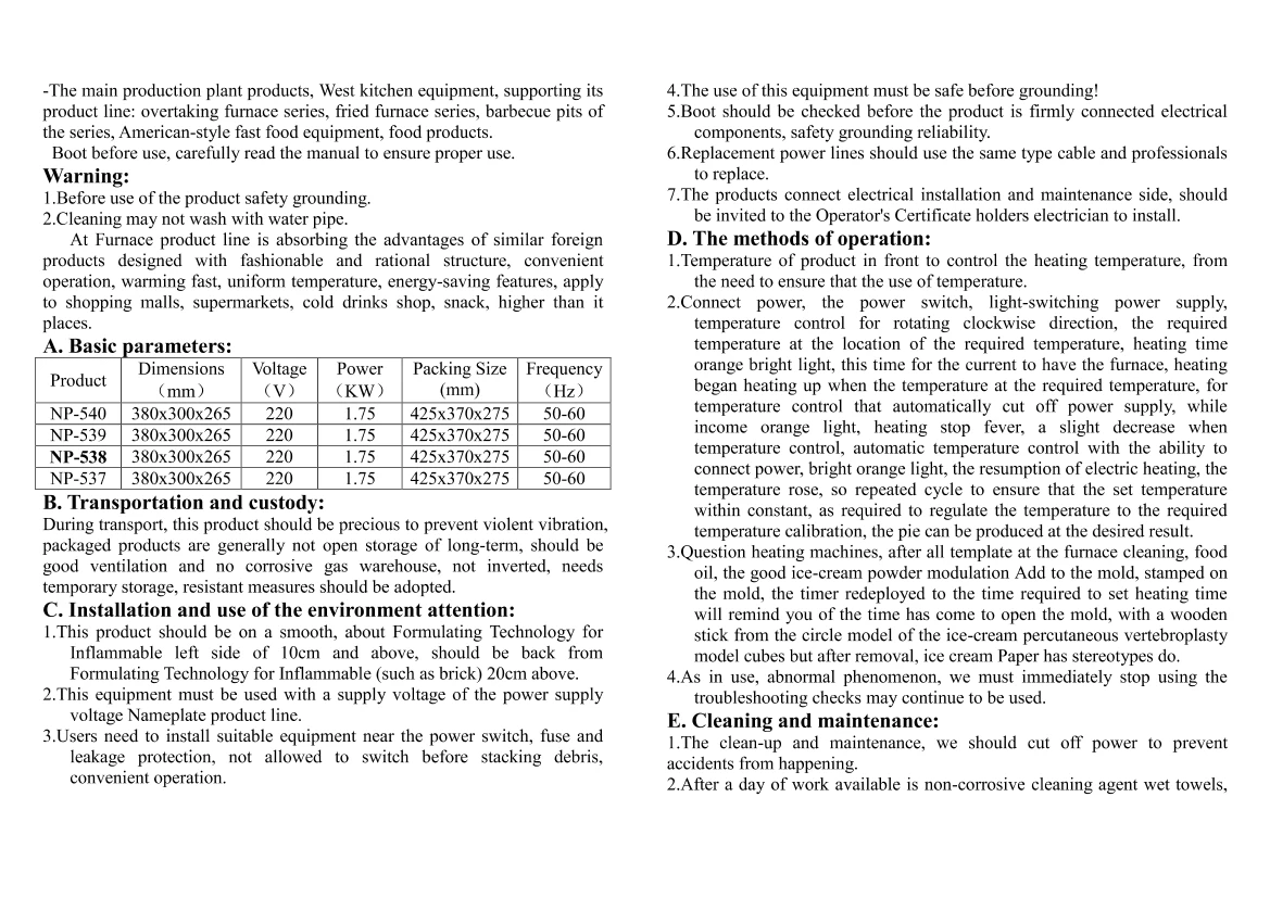 Модель: NP-538 Напряжение: 110 В/220 В 50 Гц Мощность: 1,5 кВт Размер: 380x350x280мм Преимущества: Новая роскошная модель, новый дизайн, более разумный узор, более удобный в использовании, вся нержавеющая сталь 201 фюзеляж, без магнита, уплотнение пластины, более разумный дизайн, дизайн ручки, более высококлассный и красивый, толщина рукоятки находится в 3 раза больше, чем оригинальный, до 2,5 мм, класса люкс для ног 1. Корпус из нержавеющей стали, литая алюминиевая модель с высокой проводимостью, быстрым нагревом, более энергосберегающей, функцией автоматического контроля температуры, специальным антипригарным покрытием Te Fulong, простой в эксплуатации. 2 .. высокопроводящая Чугунная Пластина распределения тепла, так что в течение 3-5 минут, чтобы обеспечить Золотой кондитерский пончик торт. 3. Съемный лоток для капель вокруг нижней пластины будет собирать любые избытки, таким образом, легко чистить. 4 .. двухстороннее отопление, более равномерное нагревание, более адекватное, делает изделие однородным, 5 .. лучшее качество, одноразовое формование 12. 6 .. есть функция подсказки времени, операция более простая и удобная.