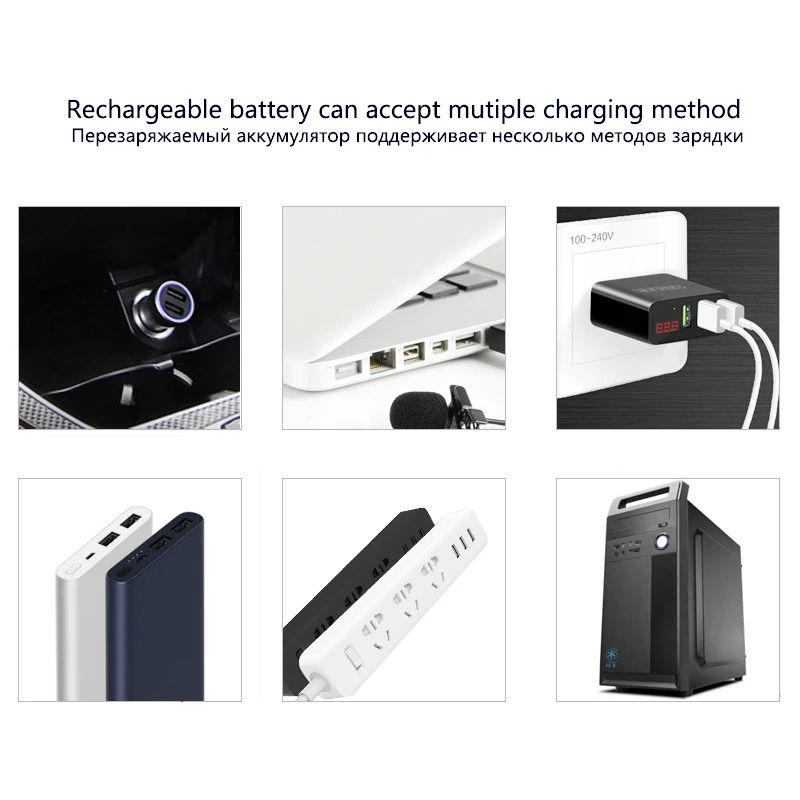 5. Его можно заряжать с помощью различных зарядных устройств (например, автомобиль, мобильный телефон, внешний аккумулятор, ПК и т. Д.)