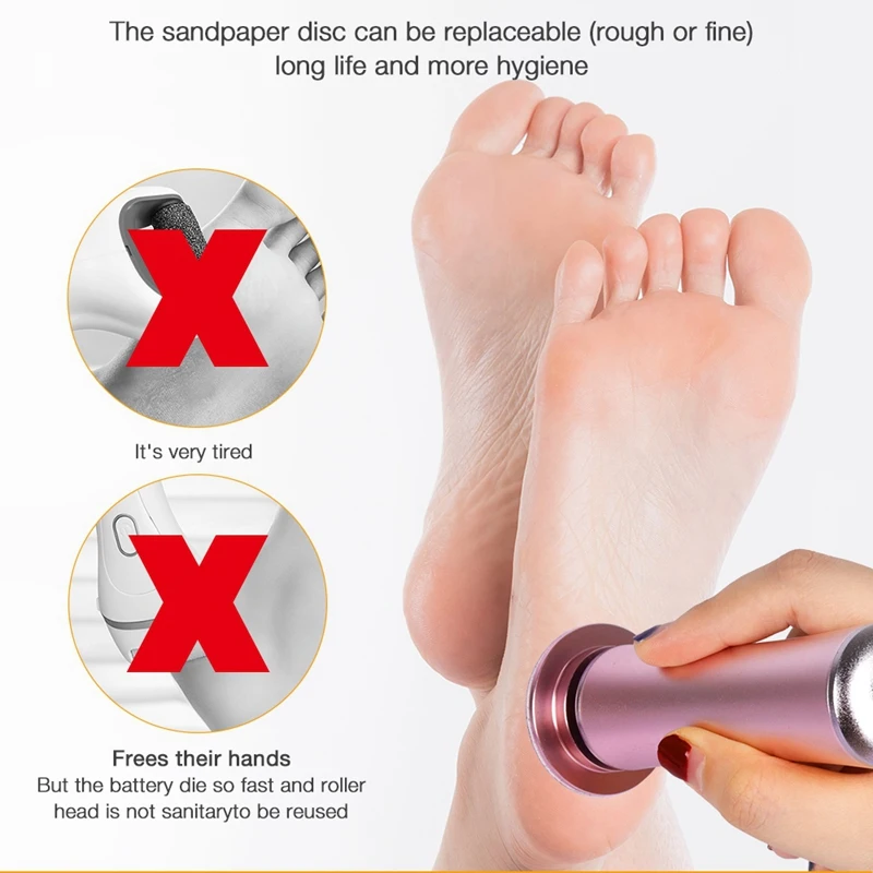 360 degree rotating to remove foot heel cracked, dry, dead skin, calluses.One person for one sandpaper disc, more healthy, perfect for nail salon family use.