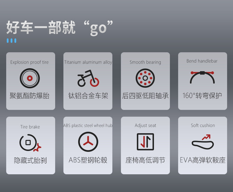 Особенности: -Рама из титанового сплава, прочная и сверхлегкая -Непневматические резиновые колеса -Со вспомогательными колесами, гораздо безопаснее -3 цвета на выбор