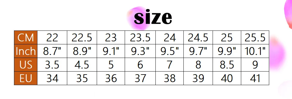 Пожалуйста, выберите размер в соответствии с длиной Вашей стопы. Если ваши ноги немного полные и широкие, пожалуйста, выберите больший размер. Если вы не можете убедиться в размере, пожалуйста, свяжитесь с нами.