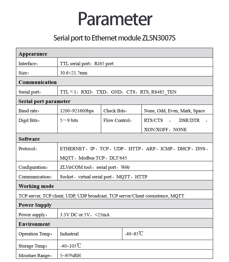 ETHERNET, IP, TCP, UDP, HTTP, ARP, ICMP, DHCP, DNS, MQTT,Modbus TCP