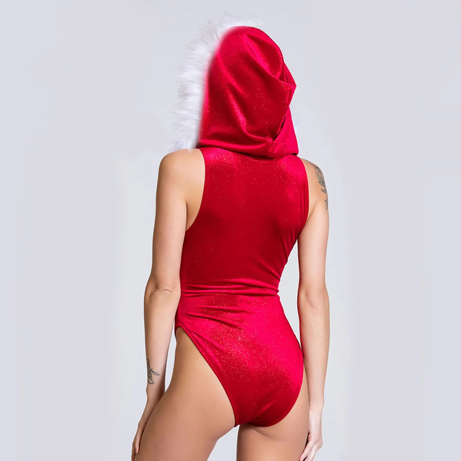 Женский сексуальный Рождественский комбинезон, нижнее белье с капюшоном, белая Пижама с перьями, боди