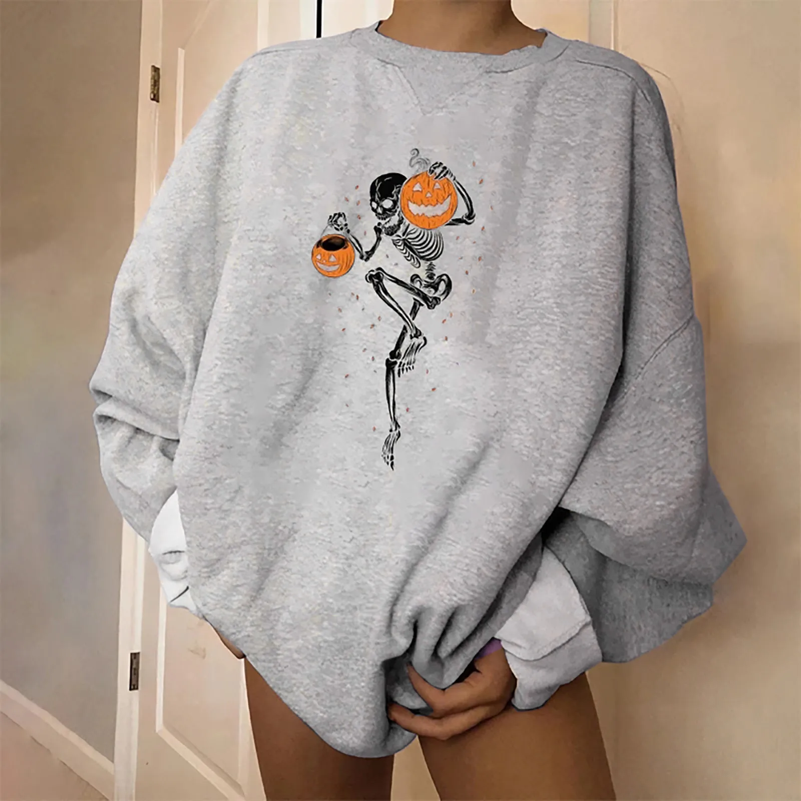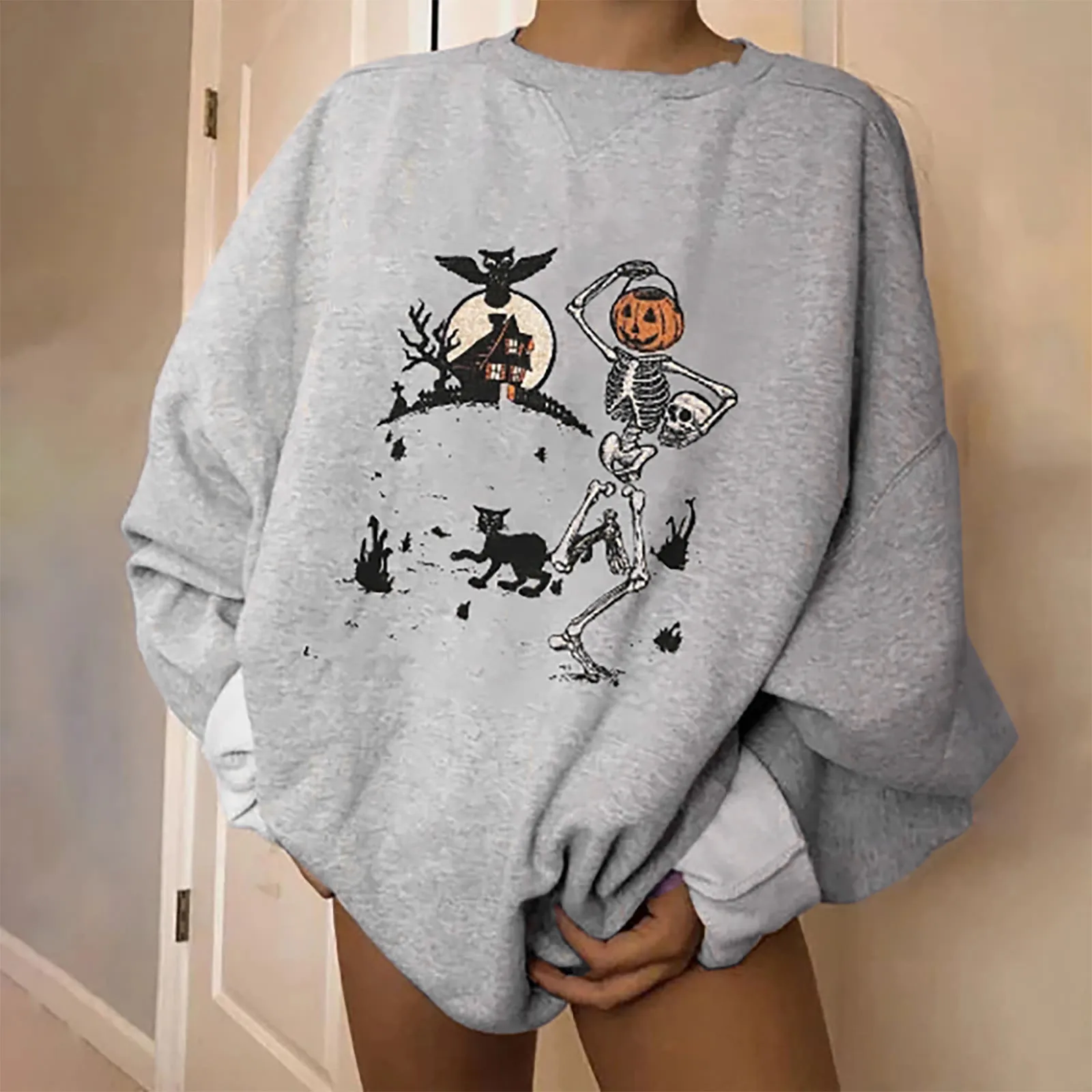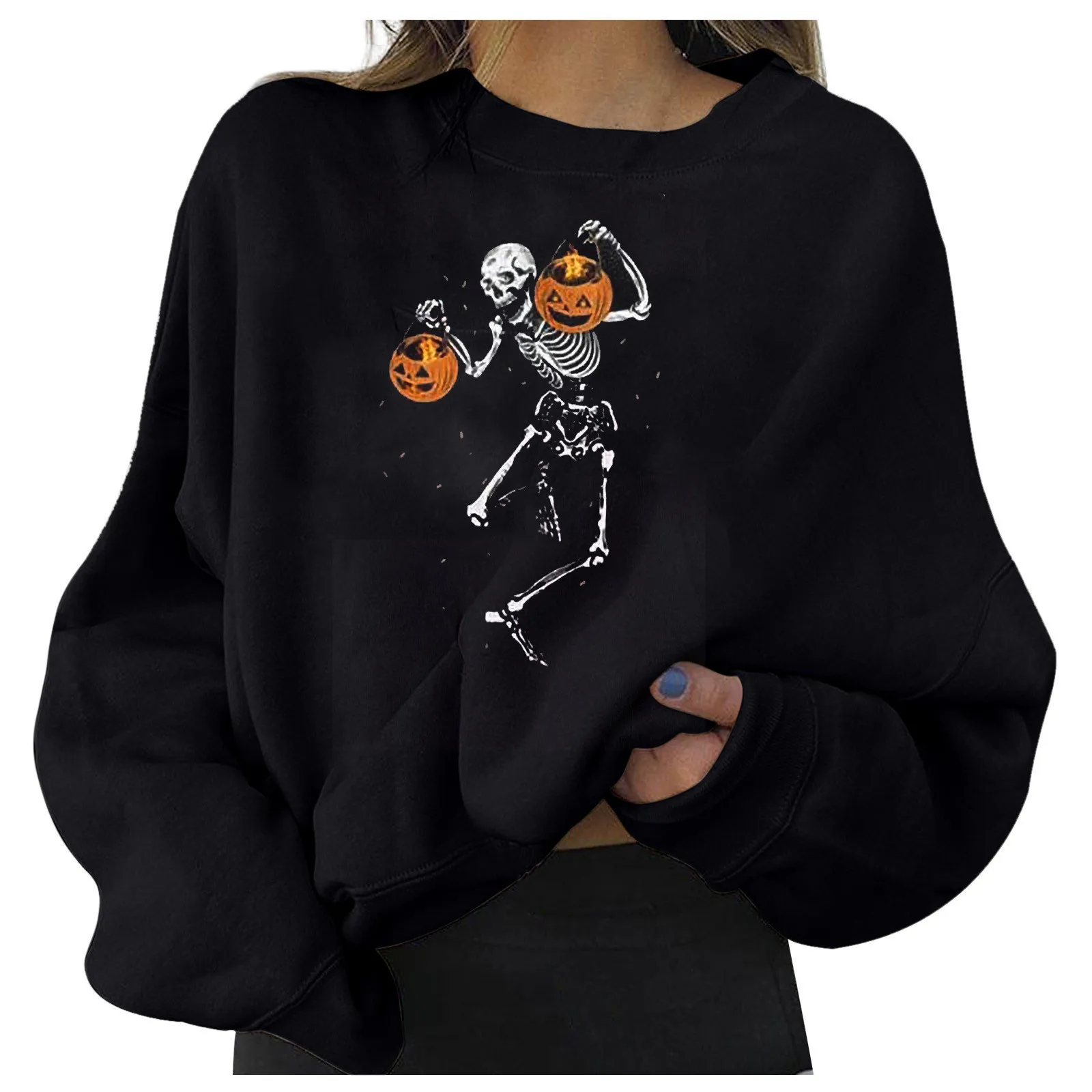 Женский Повседневный пуловер с длинным рукавом и принтом на Хэллоуин