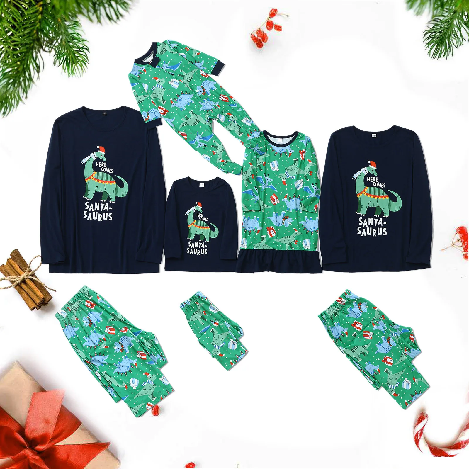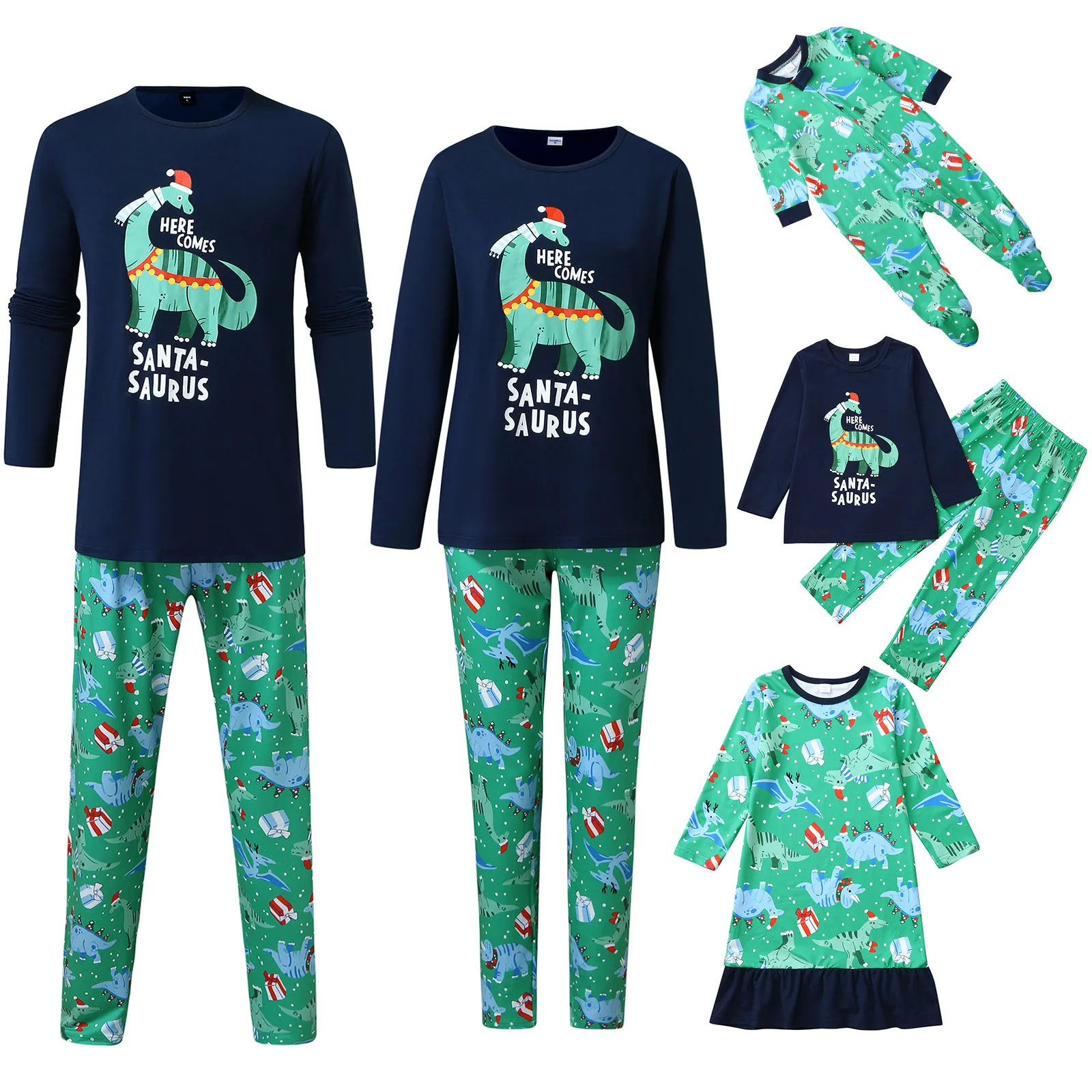 НОВАЯ РОЖДЕСТВЕНСКАЯ блузка с принтом динозавра для женщин и мам топы и штаны, семейная одежда, пижамы, Семейный комплект из четырех человек, удобный для кожи, быстрая доставка