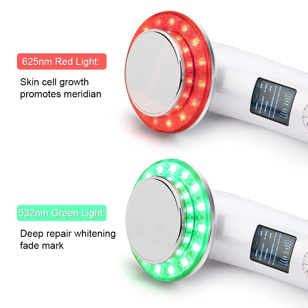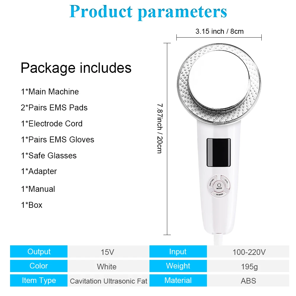 5. Это устройство принимает ультразвук 1 МГц и инфракрасную энергию для массажа и эффективного лечения кожи, а также для выполнения ультразвукового массажа для похудения, чтобы лепить контур тела, устранять лишний жир, тонизировать мышцы, стимулирует здоровую функцию тела через омоложение клеток и восстановление метаболизма тела.