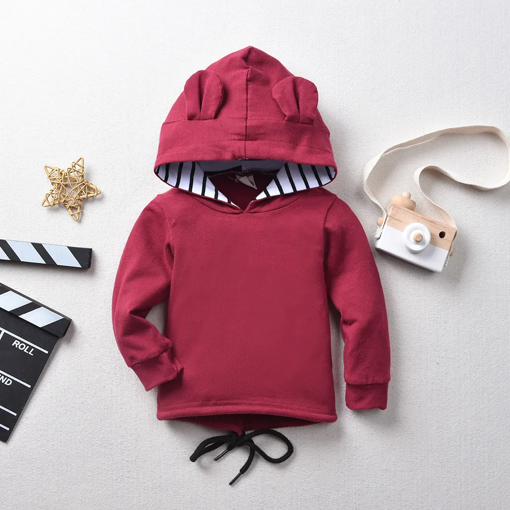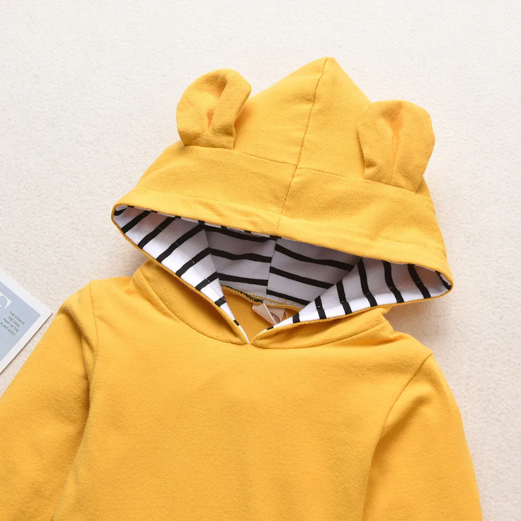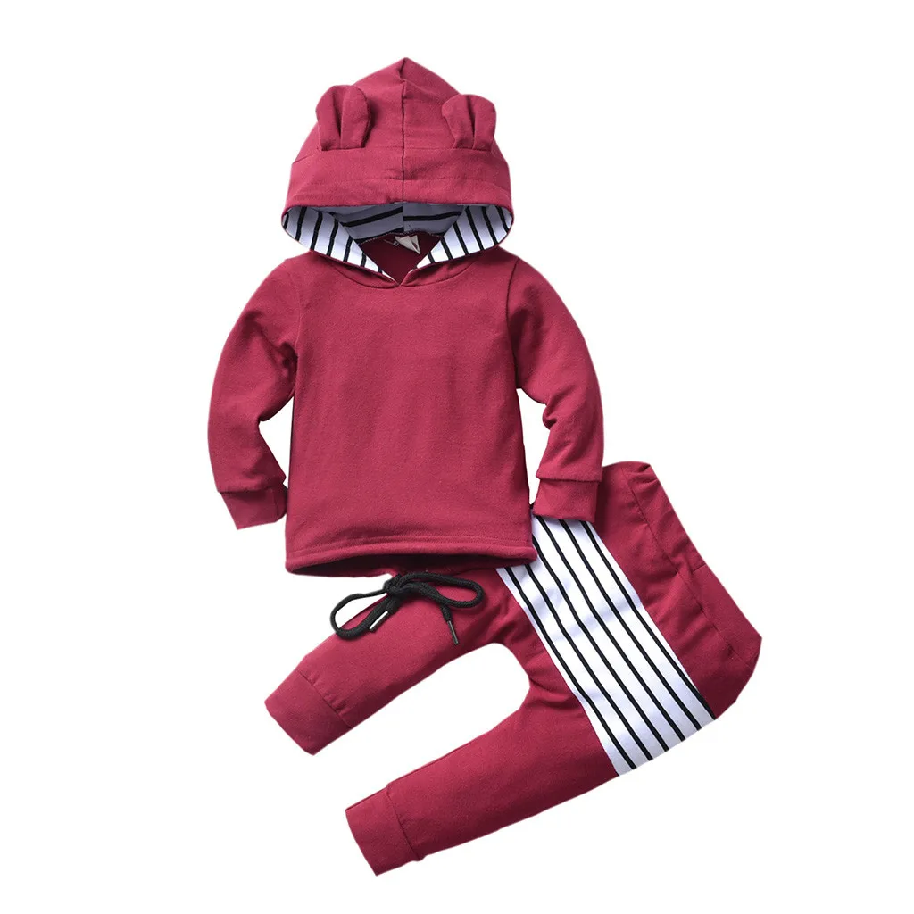 Толстовка с капюшоном и ушками для маленьких мальчиков и девочек + штаны в полоску, одежда