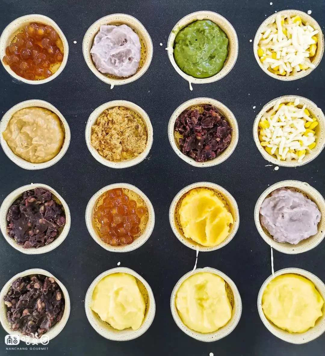 Кукурузный крахмал 50 г мука: 40 г сахар 170 г чистое молоко: 250 мл (1 бутылка) вода: 520 г желтый крем (животное) 20 г порошок Jishi (100 бриллиантов) 20 г яиц 2 (около 30)