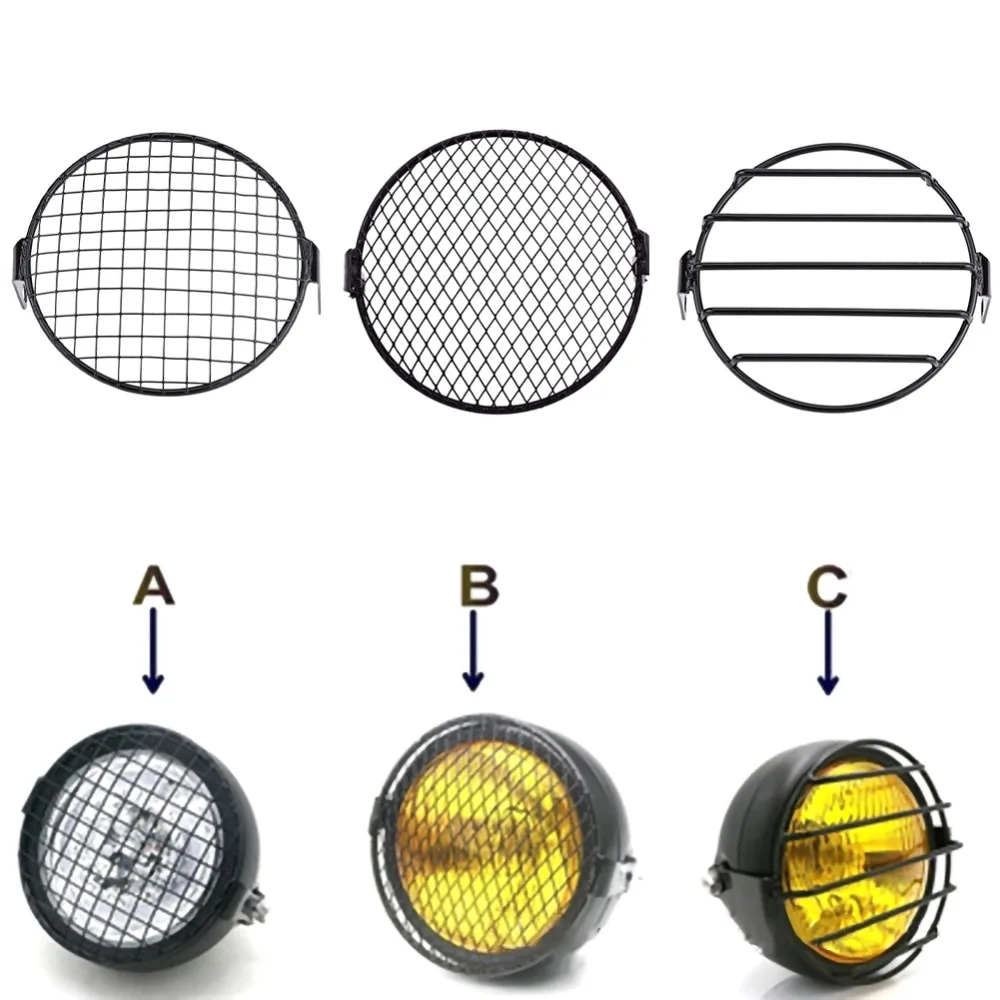 7inch Motorcycle Headlight Mesh Grill Mask Protector Guards Square Metal Cover