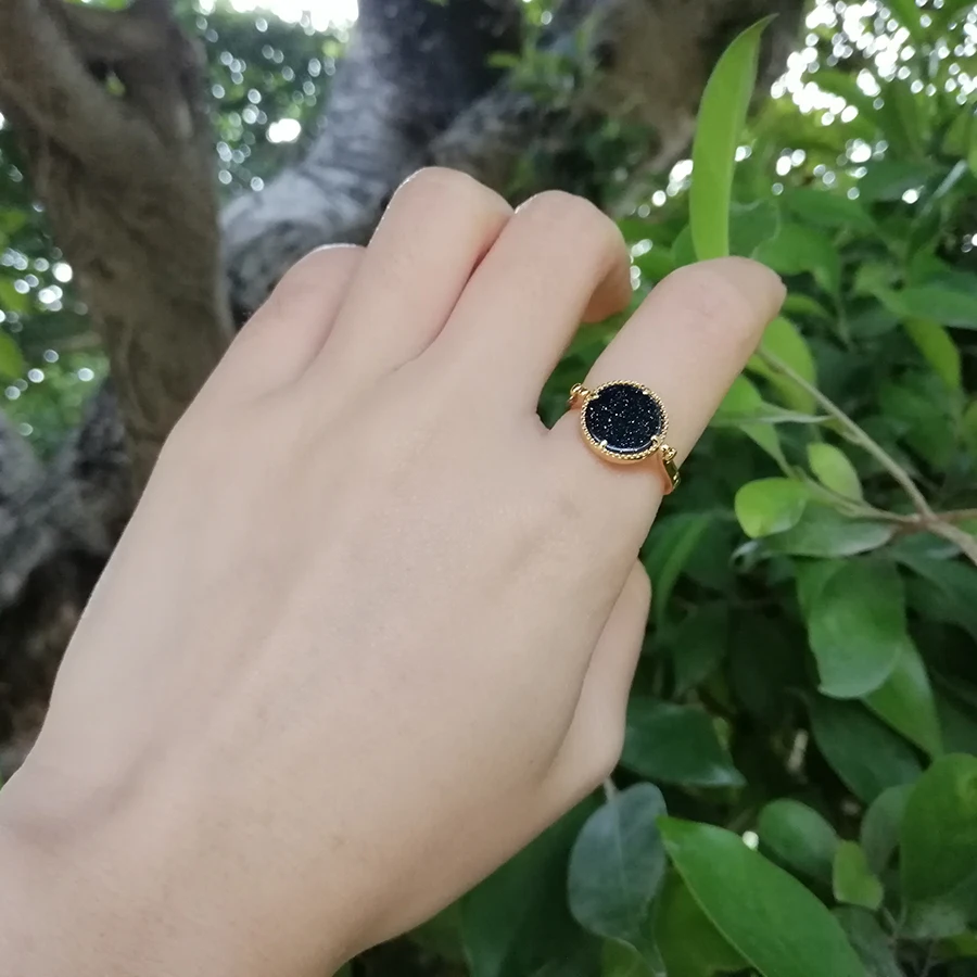 ALLNOEL, регулируемые кольца для женщин, твердое кольцо из стерлингового серебра 925 пробы, натуральный Малахитовый камень с голубыми песками, носится как с Rront, так и сзади