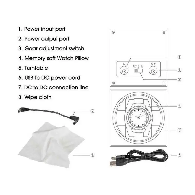 Шейкер для часов-1 шт., кабель-2 шт., руководство-1 шт., салфетка для протирания часов-1 шт.