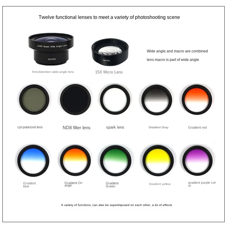 ②Аналоговый дизайн SLR с объективом и фильтром Может накладывать и переключать фильтры, что является новым и забавным для улучшения производительности оборудования для съемки;