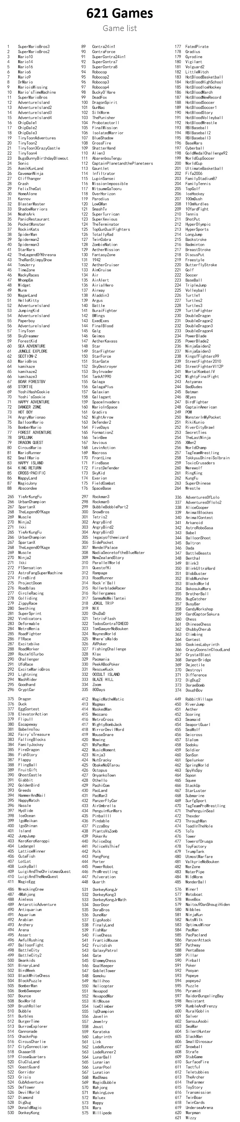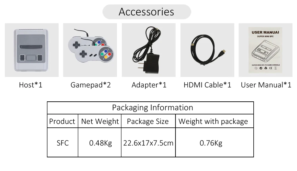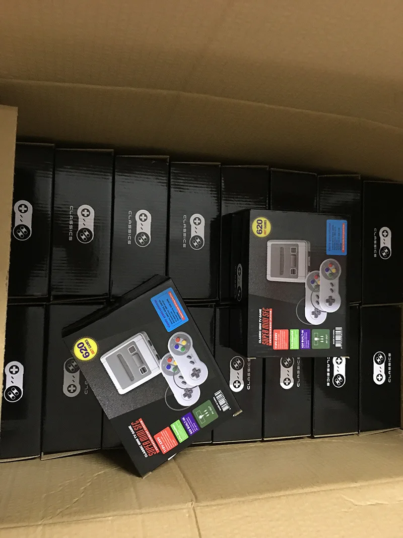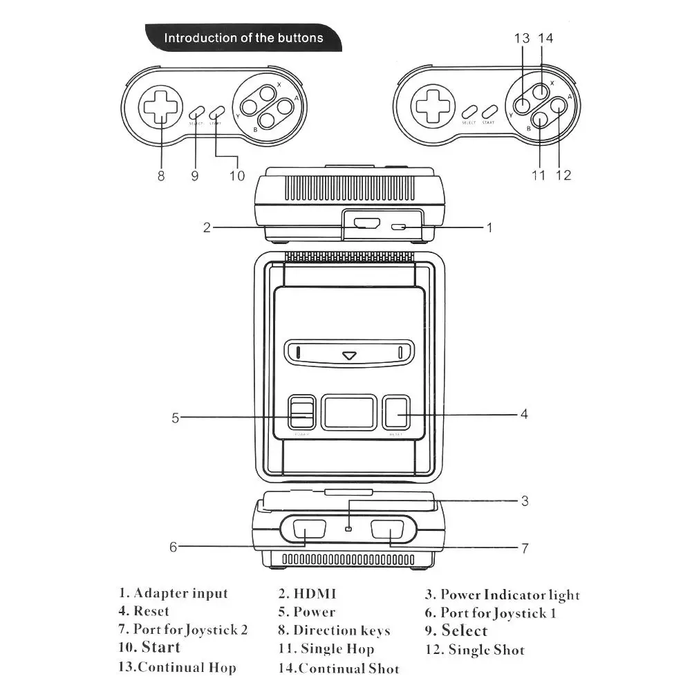 621 игры ретро мини классический HDMI-совместимый AV 8 бит видео игровая консоль Ручной игровой плеер Рождественский подарок Особенности: 1. Он построен в 621 классических играх. 2. Он будет отправлен с помощью кабеля, совместимого с HDMI. 3. Новые SFC совместимы с nasure. 4. Карта поддержки отсутствует. 5. Номер 621 повторяется. 6. Оснащен двумя контроллерами для поддержки двух игровых игр. 7. Домашняя ТВ-игровая консоль. 8. Взрослые и дети играют в игры вместе. Характеристики: Материал: АБС-пластик Входное напряжение: AC 110V ~ 240V / 50 ~ 60Hz Выходной ток: 5 В/200 мА Мощность Длина шнура: 1,5 м/4.92ft HDMI Длина кабеля: 1,5 м/4.92ft Длина ручки кабеля: 1,8 м/5.91ft Встроенные игры: 621 игры Размер: 135*110*45 мм/5,31*4,33*1,77'' Стандарт Вилки: ЕС, США