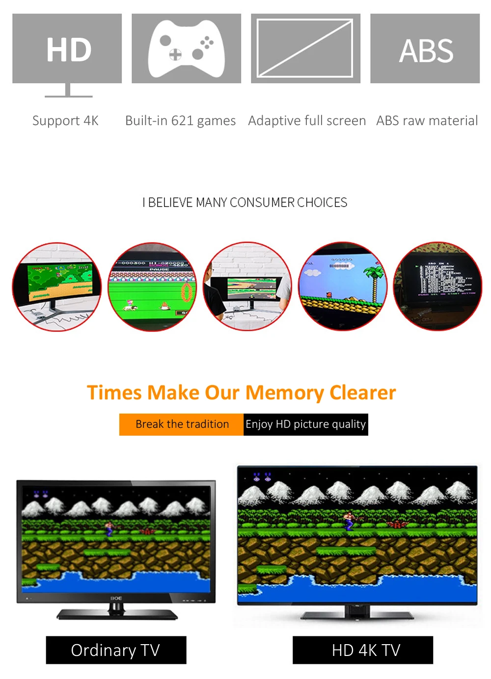 Ретро видео игровая консоль с 621 классическими играми 4K TV HDMI-совместимый 8 бит Ручной игровой плеер два контроллера для детей подарок