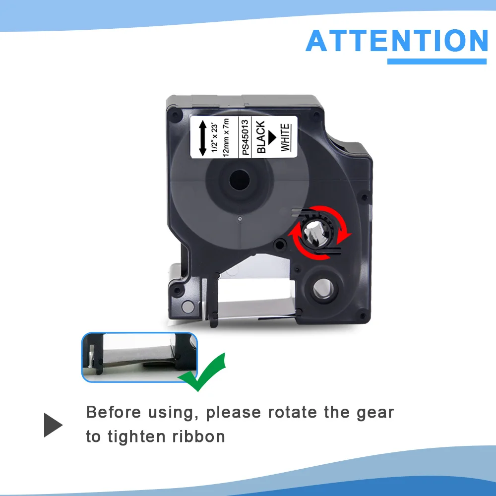 Модель: для Dymo D1 45023 Материал: ПЭТ, АБС Цвет: черный на золоте Ширина: 1/2 дюйма (12 мм) Длина: 7 м Посылка включено: 3 * этикеточная лента (3 шт.)