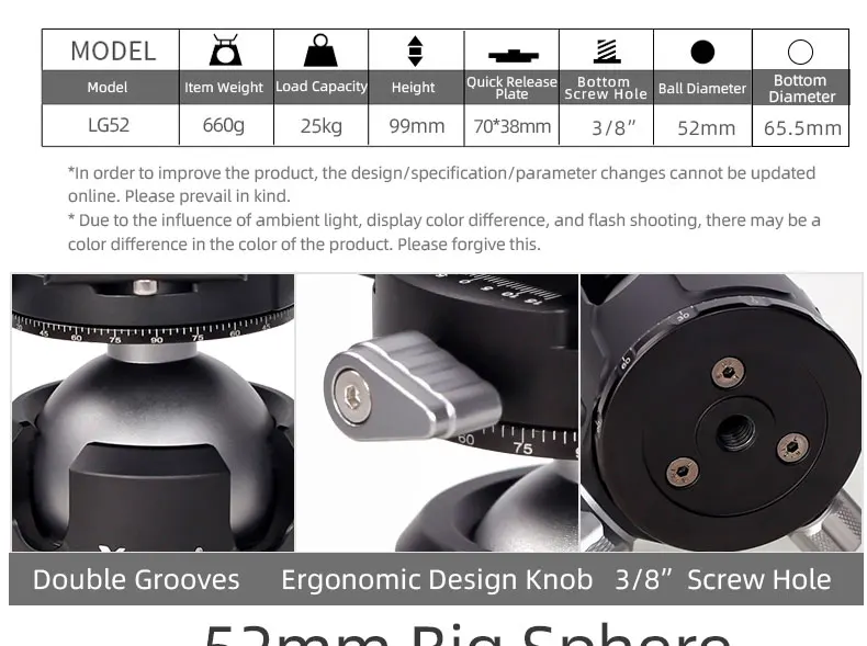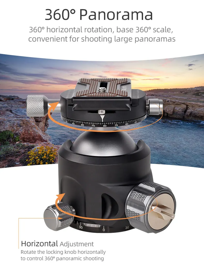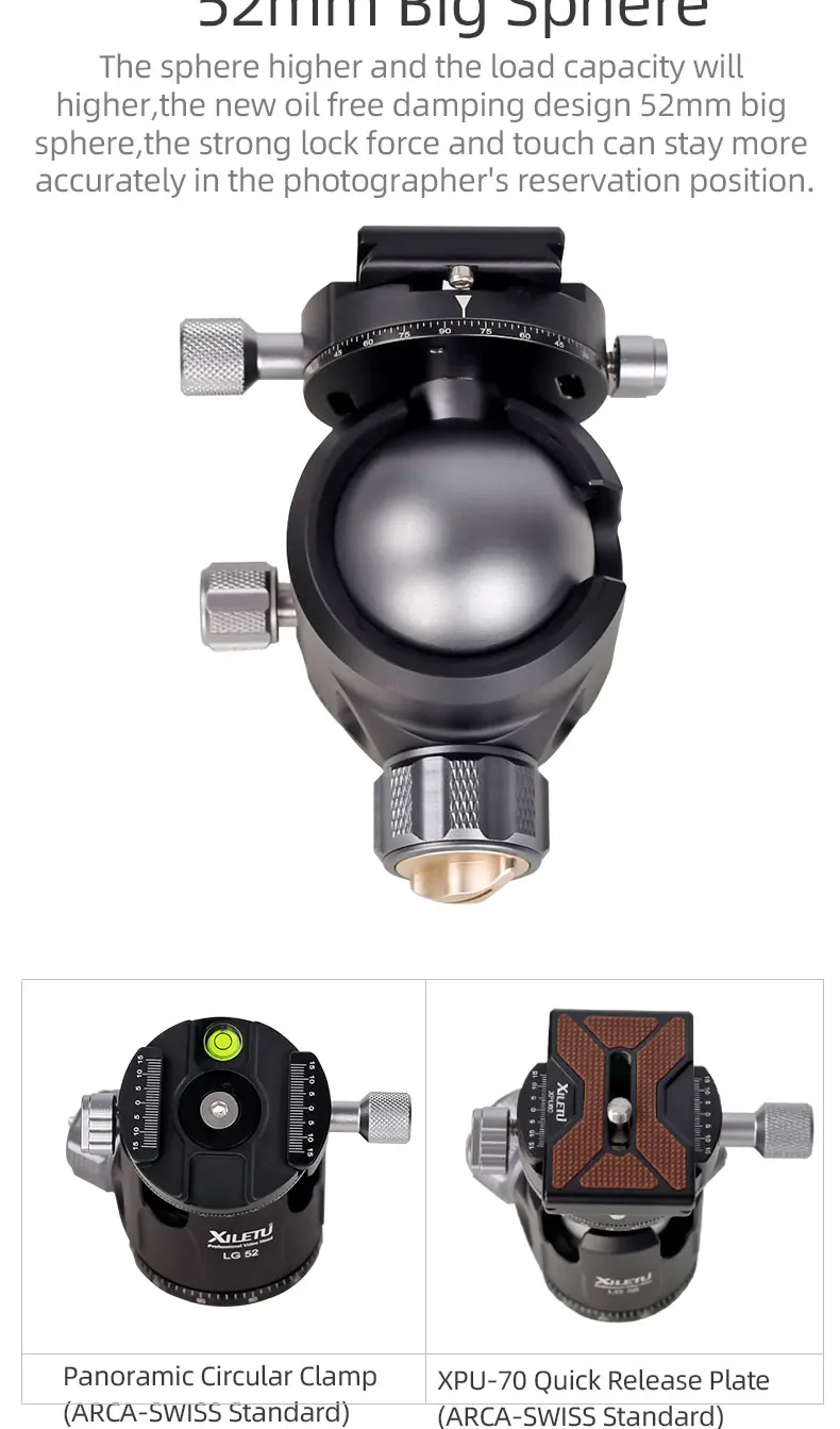 【Низкий профиль более стабильный 】 шаровая Головка спроектирована с низким центром тяжести, ЧПУ, 52 мм большим диаметром шара, что делает его чрезвычайно стабильным. И слот безопасности защищает вашу камеру в любое время. 【Отличная Quality】The низкий профиль шаровой головкой принимает цельнометаллический структура, 0,1 мм подвергая механической обработке допуск, Анодное анодированный, ультра-высокопрочный авиационный алюминиевый сплав. Он прочный, устойчивый и высокого качества. 【Отличный дизайн 】 двойные канавки и легкий дизайн. Максимальная несущая способность этого низкопрофильного шарового крепления камеры составляет 25 кг. Вес: 0,66 кг. 【Широкое применение 】 3/8 "резьбовые отверстия в нижней части шаровой головки и простота установки штатива, монопода, слайдера камеры и мини-штатива. С резьбой 1/4 "сверху, для установки камеры, DV, мобильный телефон, телескоп. (Подарки: БЫСТРОРАЗЪЕМНАЯ пластина)