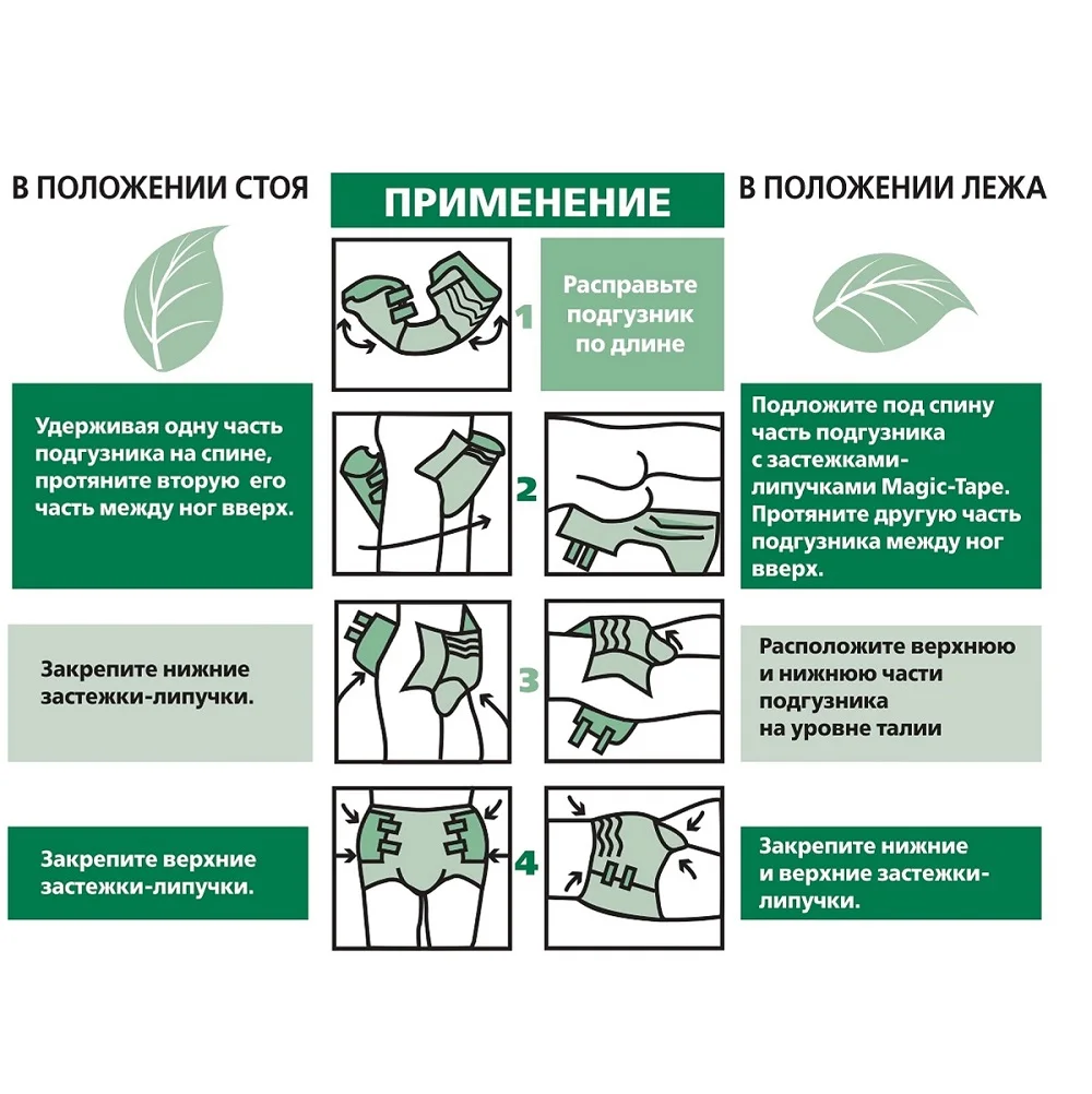 Широкая часть впитывающего слоя в области спины создает дополнительный комфорт в положении лежа и препятствует протеканию.