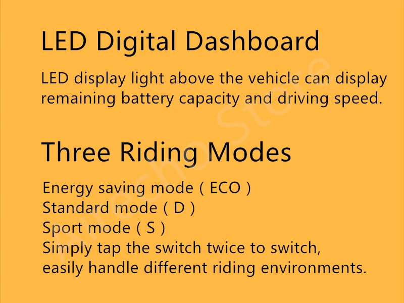 Режимы езды: 3(Eco,Drive,Sport) от транспортного средства; 1 пешеходный режим
