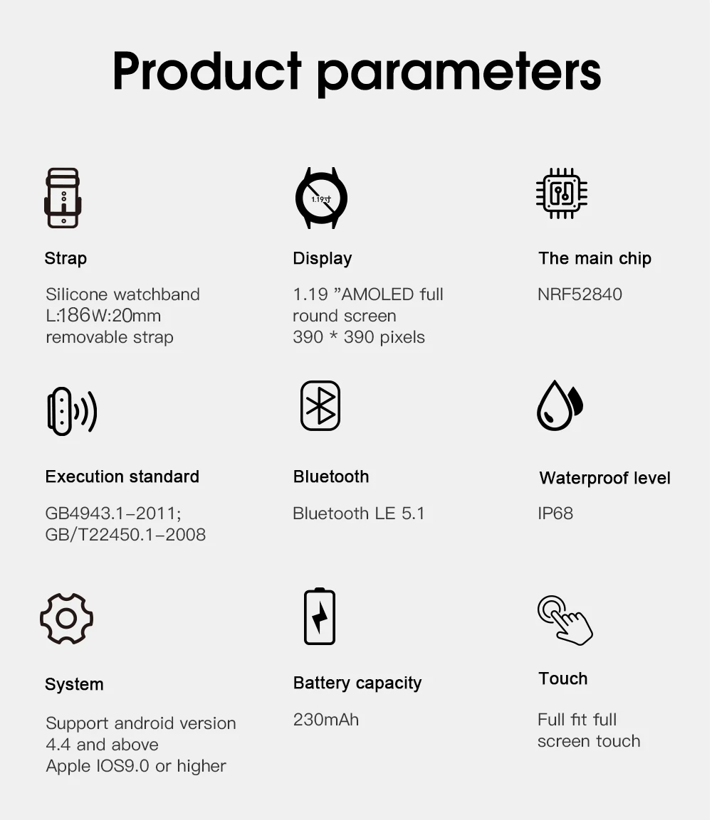 Новые смарт-часы S2, женские круглые Смарт-часы с сенсорным экраном, Ip68, водонепроницаемые, ЭКГ, пульсометр, фитнес, умные часы Pk Dt88 Kw10 Для Iphoen, Samsung, huawei, xiaomi, часы для телефона Пункты продажи Модный IP68 Водонепроницаемый высококлассный Смарт-часы, до уровня IP68 (1,5 м глубокая вода в течение 30 минут), шаги, монитор сна, частота сердечных сокращений, Bluetooth Вызов, синхронизация уведомлений. Платформа MTK2502 Тип продукта Умные часы Корпус для часов Сплав/пластик Ремешок для часов Starndard 20 мм Размер, двухцветный ремешок для часов Тип зарядки Магнитная Зарядка Зеленый продукт Сертификат CE Цвет Синий, черный, серебристый Дисплей 1,4 IPS,240*240 Сенсорный экран Емкостный полный сенсорный экран Bluetooth Звонки, SMS,Facebook,Twitter уведомления и т. Д. Сердечник Монитор сердечного ритма, следите за здоровым днем и днем Шагомер Выбор нескольких спортивных режимов, шаги, калории, запись расстояния Малоподвижный Время для работы, изменение нездорового образа жизни Монитор сна Анализ качество вашего сна научный Защита от потери Потеря напомнит обе стороны Музыкальный плеер Управляйте музыкой вашего телефона Телефонная книга Синхронизация телефонной книги с мобильным телефоном SMS Синхронизация SMS мобильного телефона, может отправить Templates ms, iOS не поддерживает до сих пор Журналы вызовов Синхронизация истории вызовов Bluetooth BT3.0 + 4,0 Аккумулятор Встроенный литий-ионный аккумулятор 220 мАч Динамик Поддержка Двигатель Поддержка Языки Упрощенный китайский, традиционный китайский, английский, немецкий, испанский, итальянский, французский, португальский-Португалия, португальский-бразильский, русский, индонезийский, малайский, польский, вьетнамский, иврит, арабский, персидский, тайский, Бирманский, турецкий, японский, корейский Прочие Функции Будильник, календарь, секундомер, калькулятор, запись и т. Д.