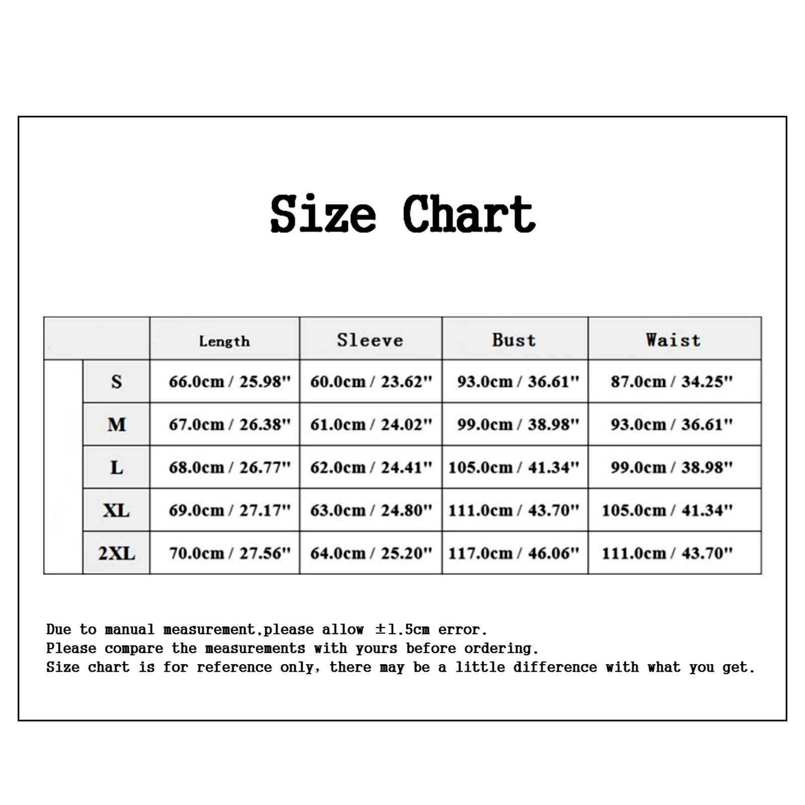 [Наш Размер 2XL] Обхват груди: 117 см/46,1 дюйма, обхват талии: 111 см/43,7 дюйма, длина рукава: 64 см/25,2 дюйма, длина: 70 см/27,6 дюйма (прибл.)